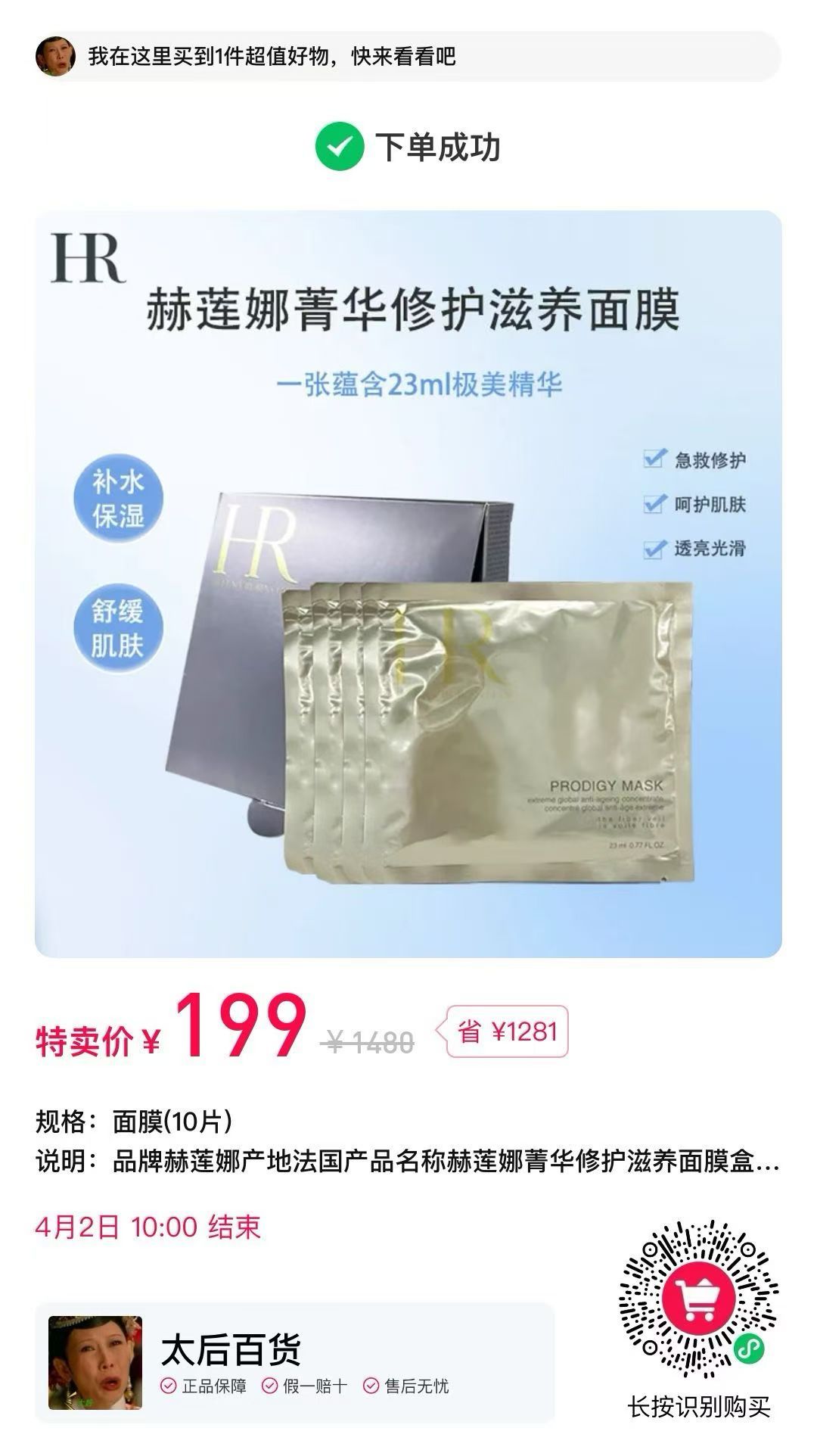 3. 【限量2000组,售完不补】赫莲娜菁华修护滋养面膜盒装+额外加赠4片!等于💰199到手10片赫莲娜面膜! 有效期到27年9月