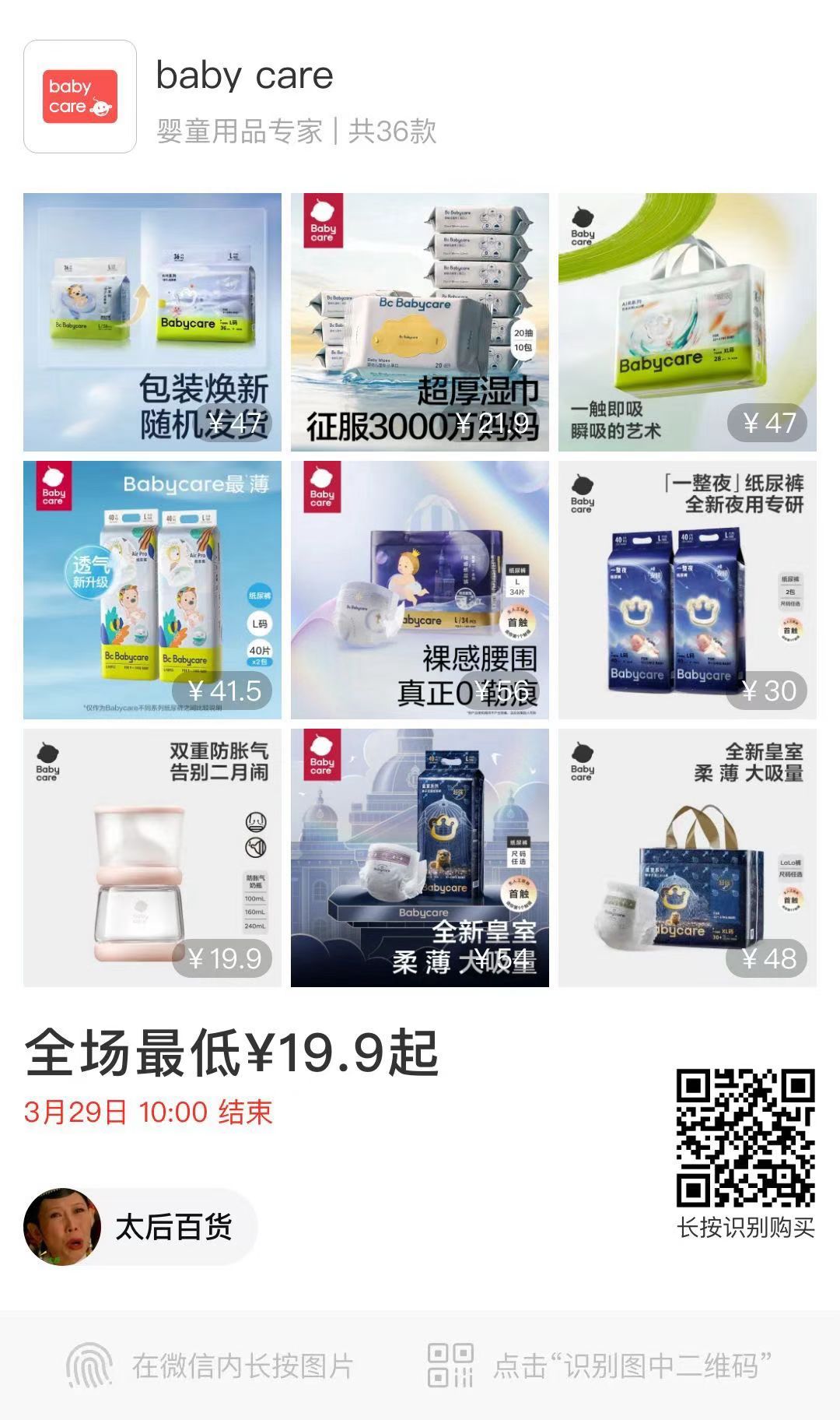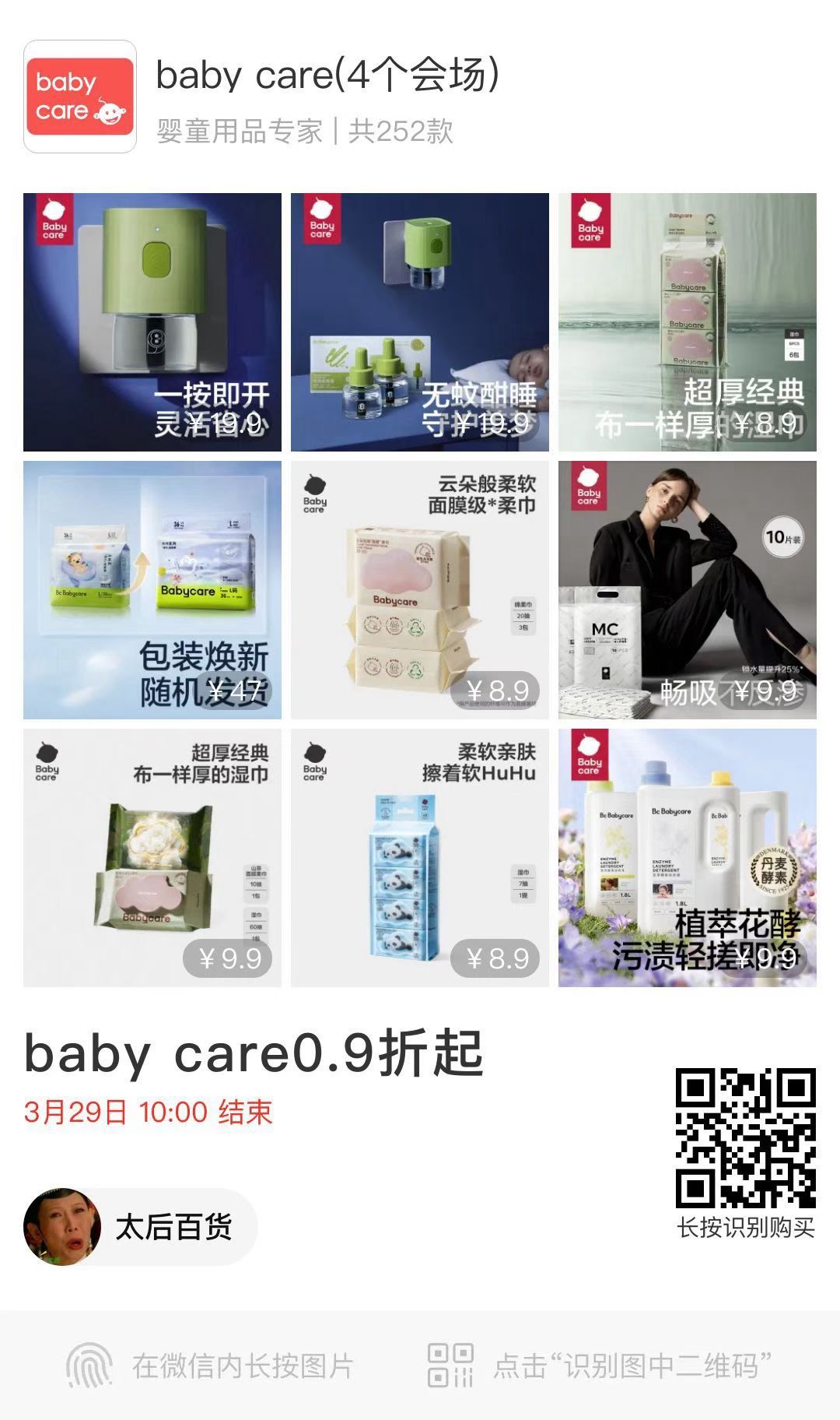晚上好!来发今日买买群总结啦!!大家有需要可以进qun购买1. babycare全场0.6折活动几毛钱一片的姨妈巾!一块多一片的纸尿裤!满足所有人需求!大家随意挑选!(另一个bbc里面有更多的是生活日用百货品和玩具品