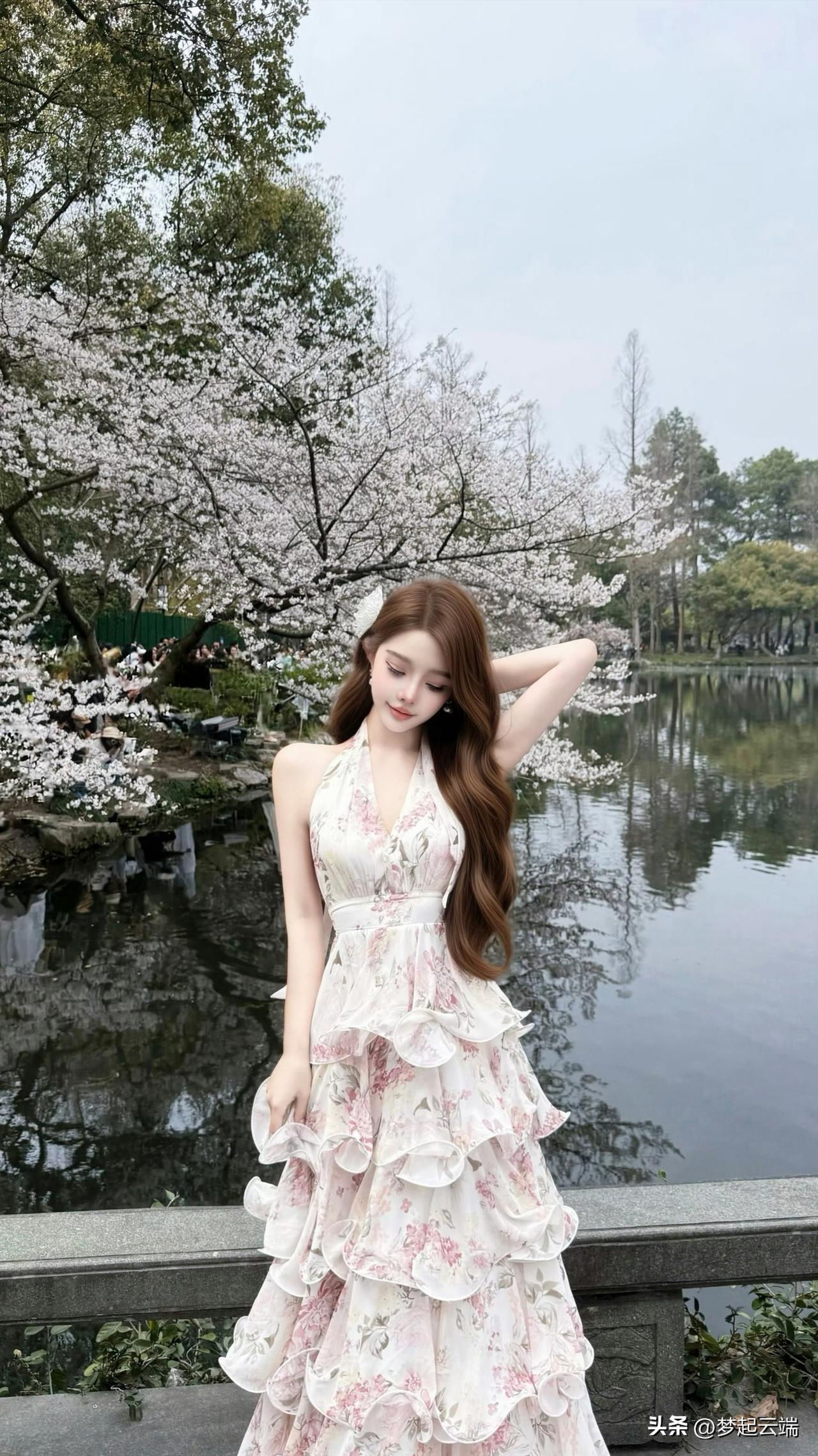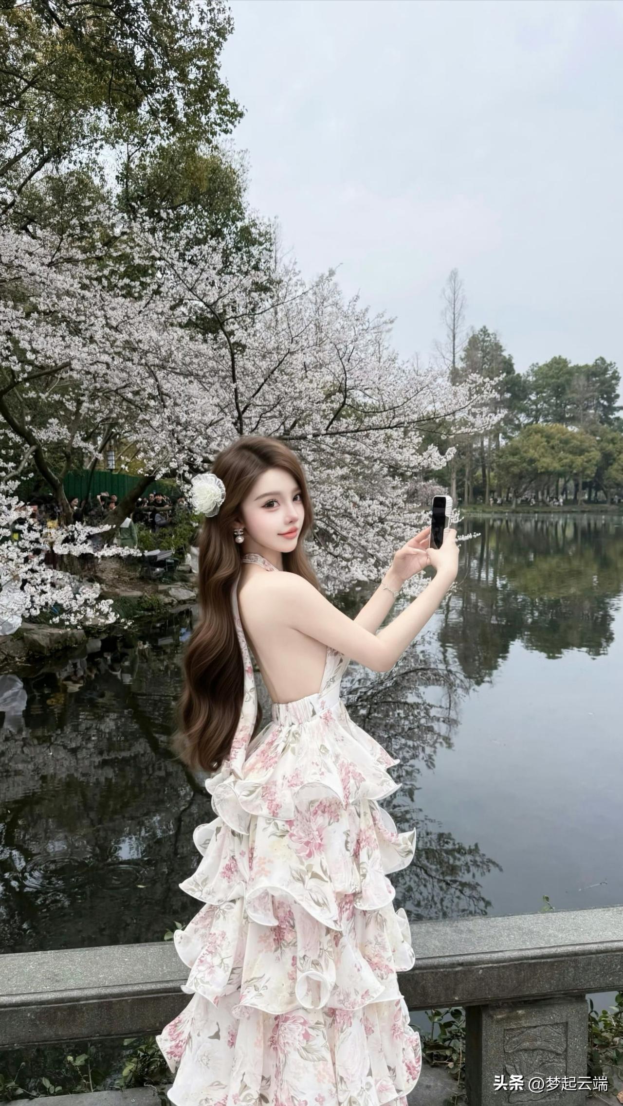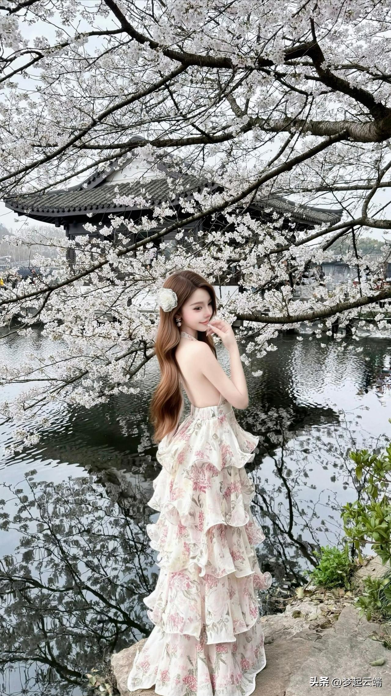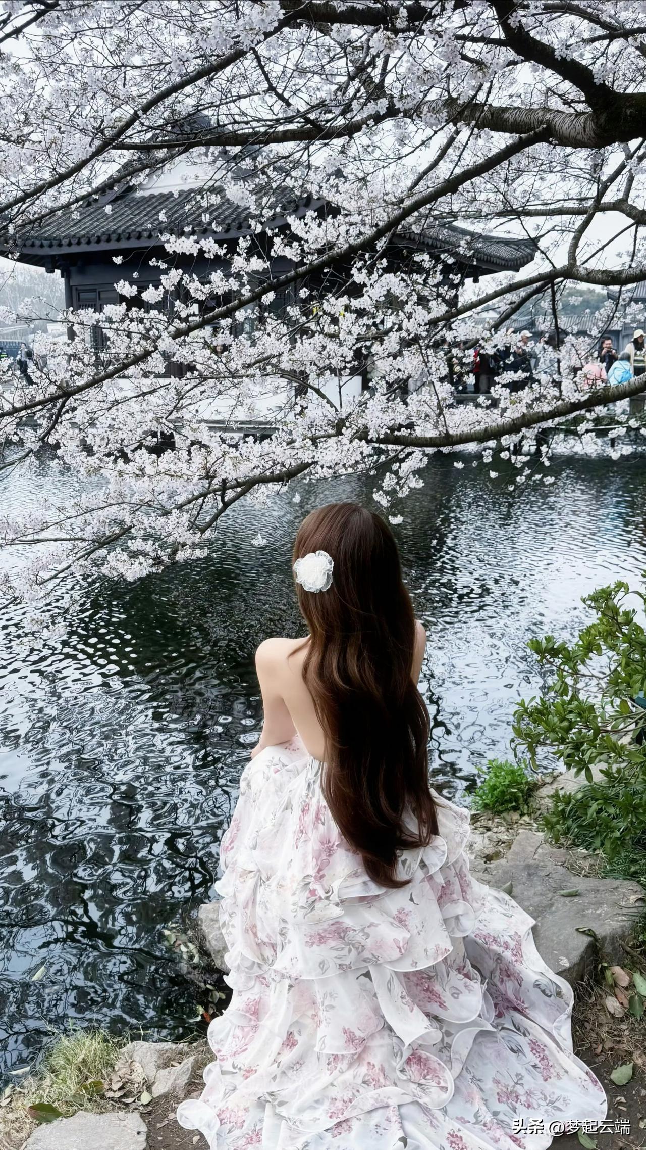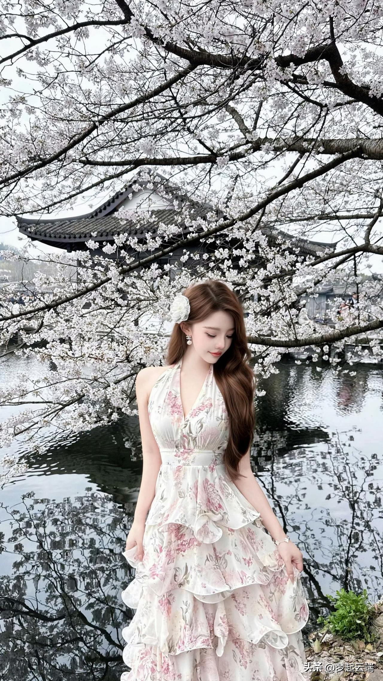 樱花树下,优雅少女,静谧时光。