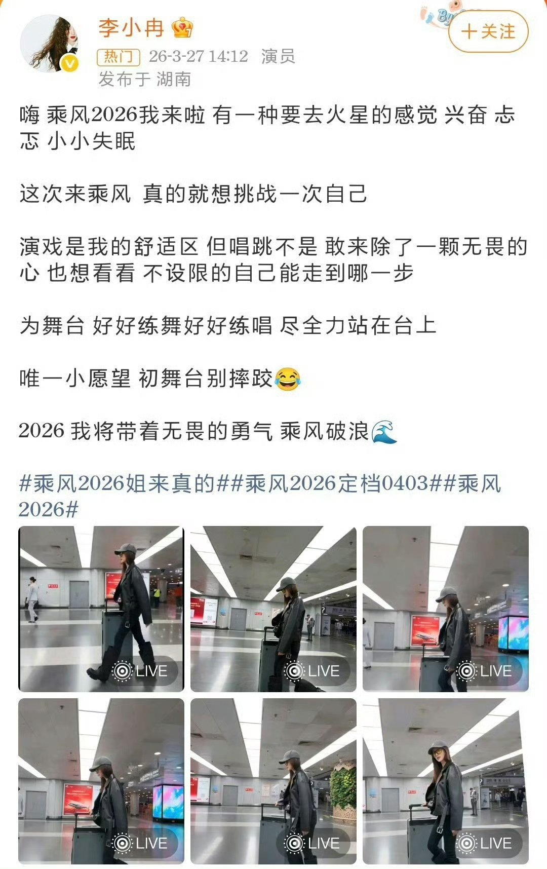 李小冉希望初舞台别摔跤乘风2026定档 姐姐别紧张呀,你本身就足够优秀,坐等舞台