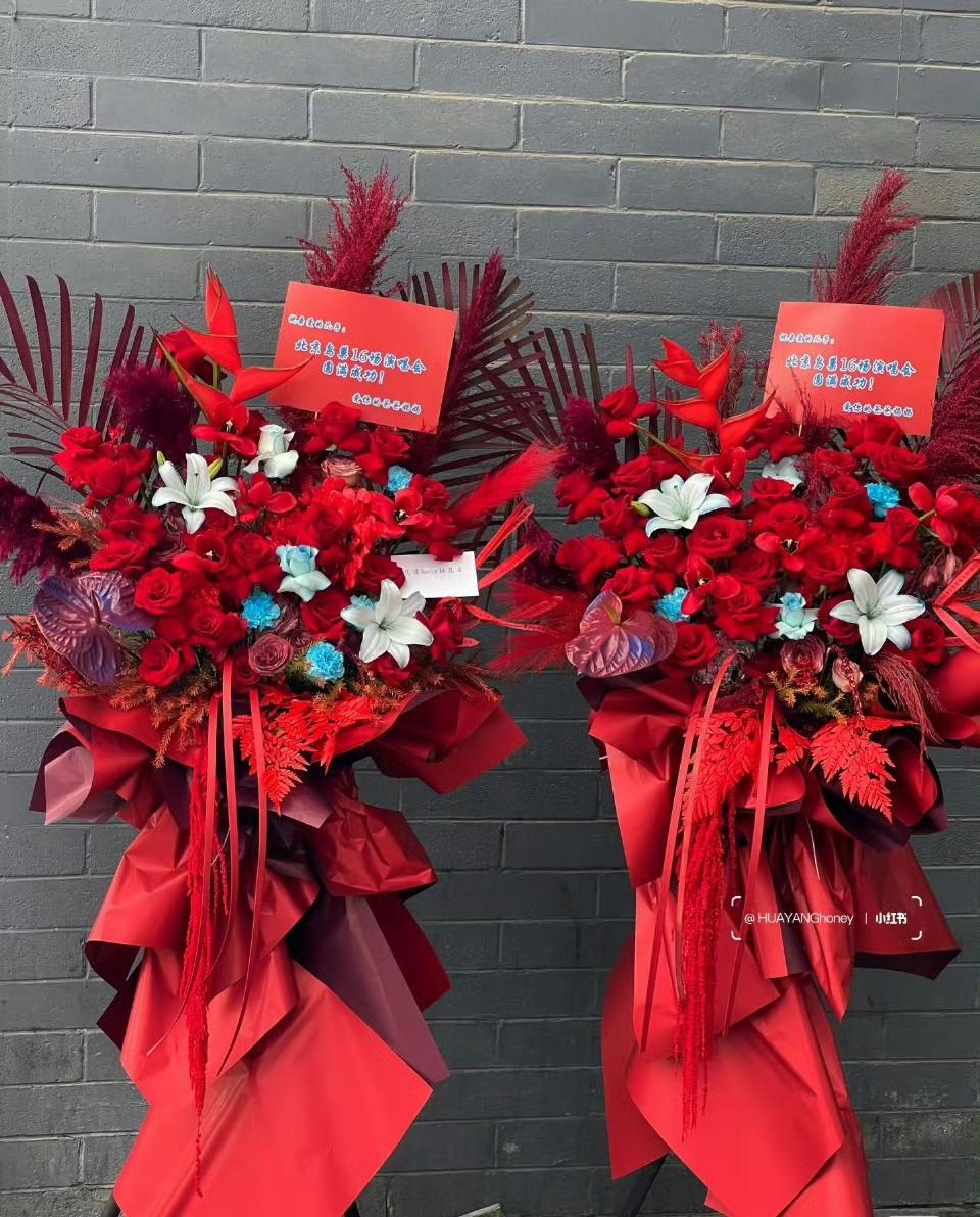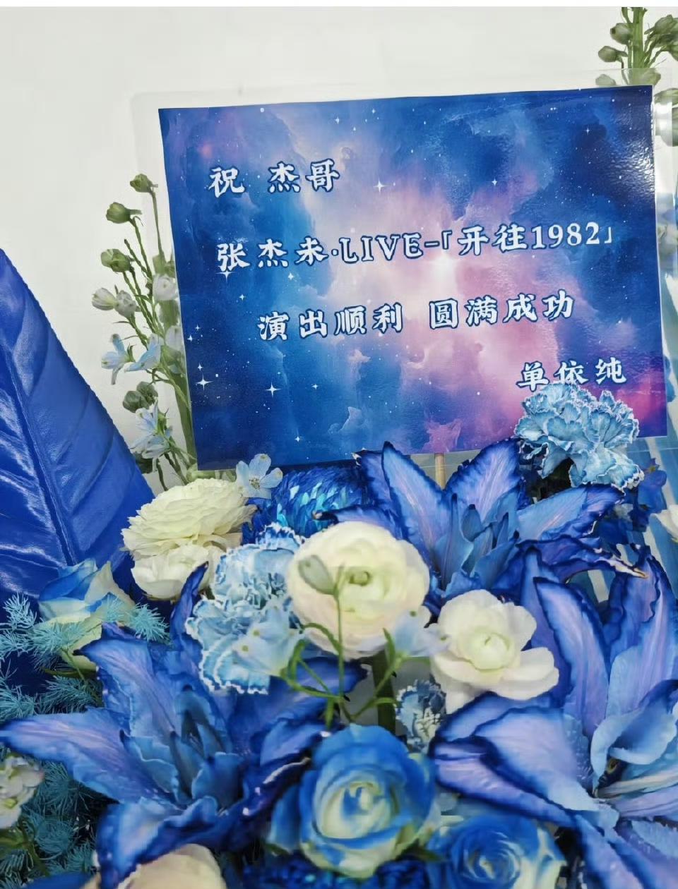 3月27日,张凌赫给张杰送了一排花篮应援,用于支持张杰鸟巢演唱会,并手写贺卡:“