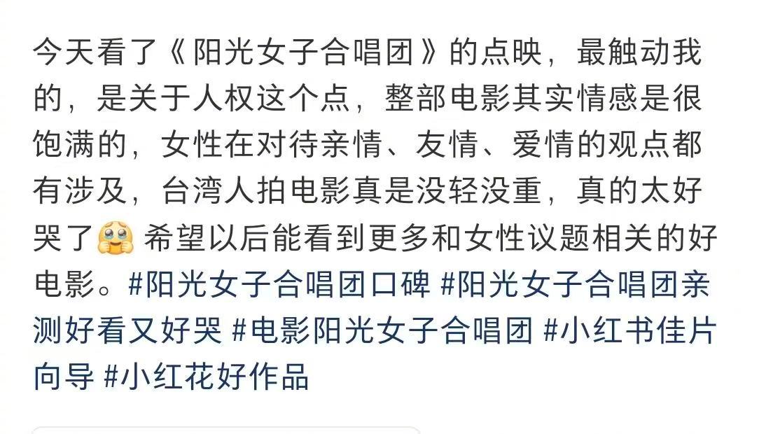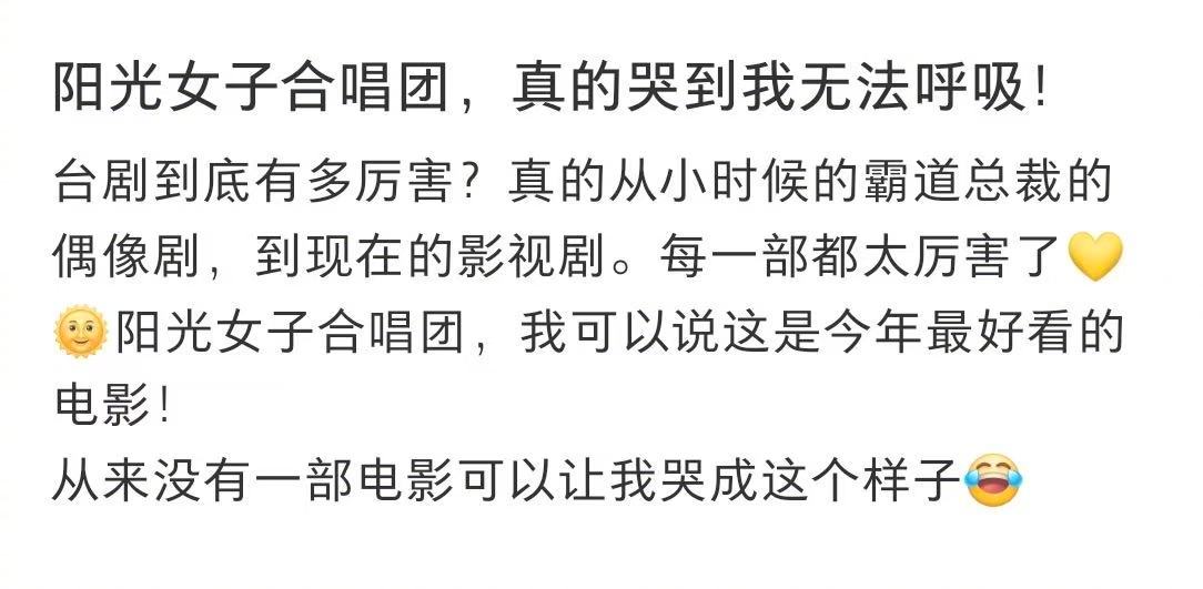 阳光女子合唱团点映口碑首轮点映口碑大爆!电影《阳光女子合唱团》陈意涵送走女儿哭戏