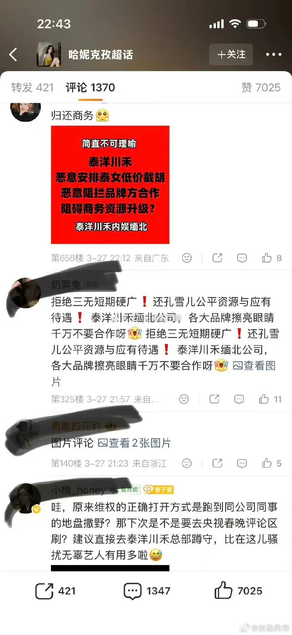 孔雪儿粉丝因为不满意商务,跑到哈妮克孜的商务博下维⭕了,咋回事啊
