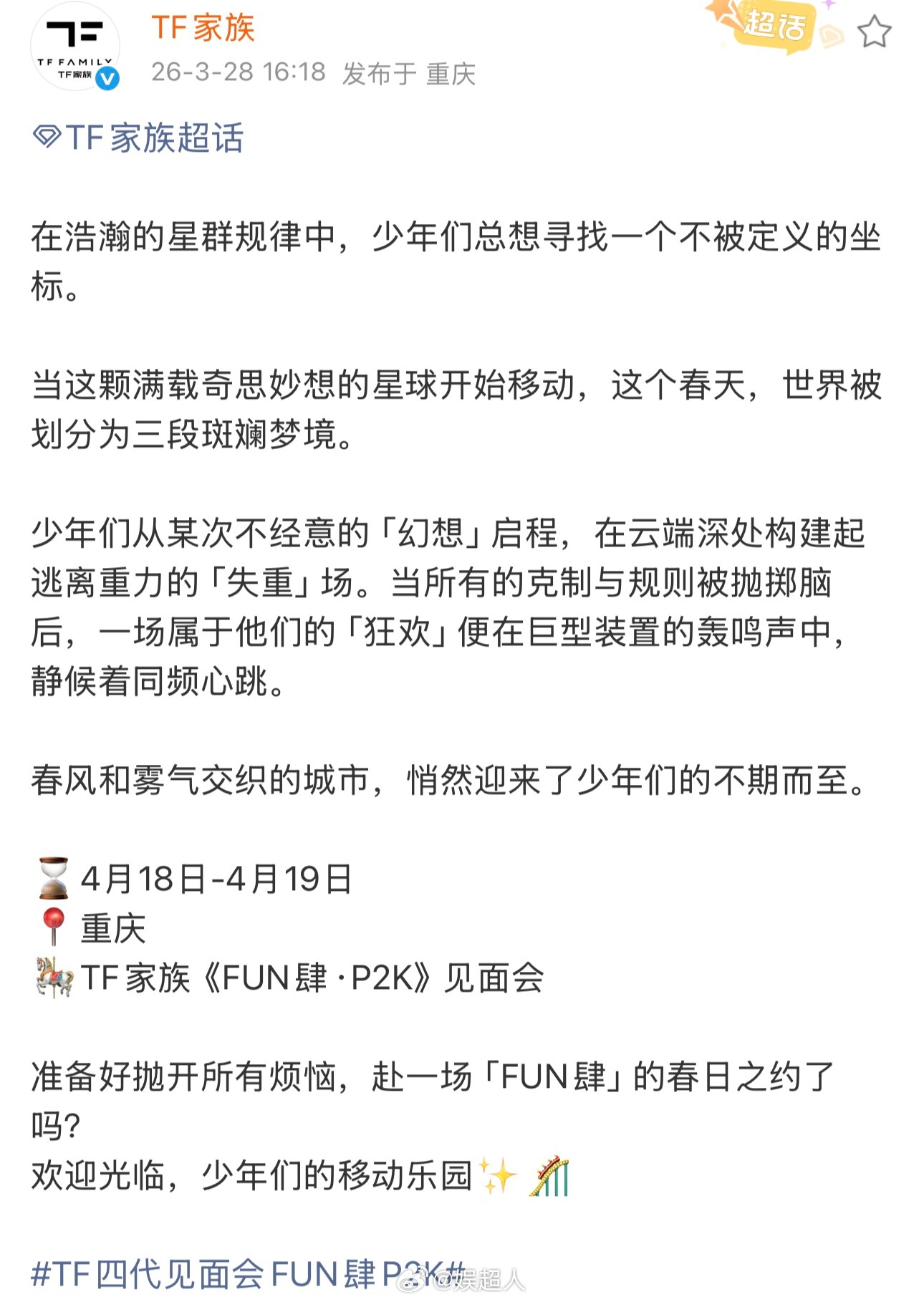 TF四代二班见面会TF四代见面会没一班 TF四代二班见面会官宣! 期待弟弟们的精彩表现