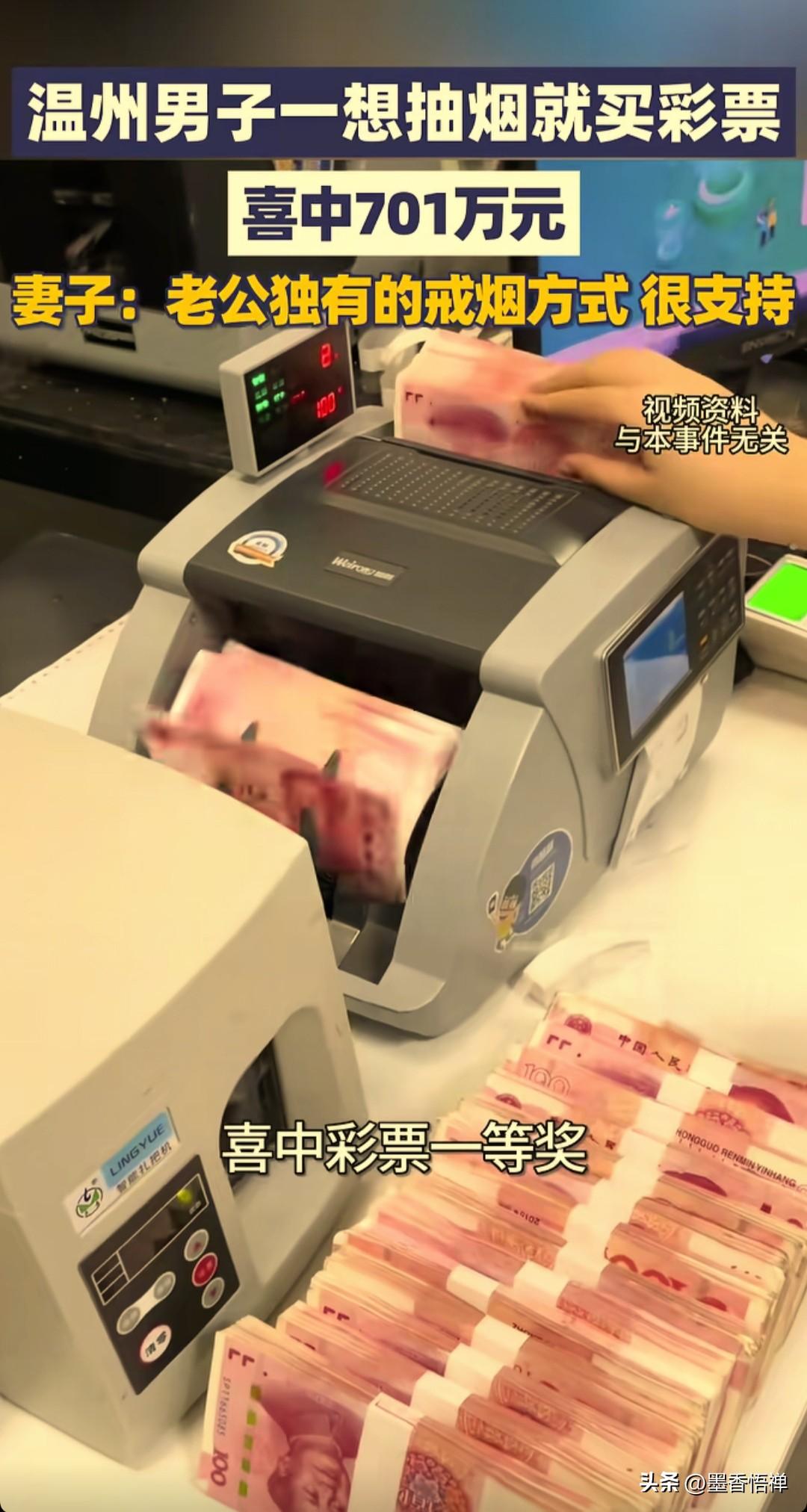 这戒烟的办法简直是绝了,近日温州一男子曾先生把“戒烟”和“暴富”完美结合,硬是把烟钱变成了701万巨款,这操作简直是天选之子啊! 曾先生为了身体开始戒烟,每当烟瘾上来的时候,他不买烟,直接把买烟的钱拿去买彩票。用他自己的话说,把想抽烟的劲儿,换成碰好运的盼头。 这种“以奖代烟”的操作,不仅没让自己难受,还让妻子觉得这戒烟的方式很特别,非常支持。 没想到,这个独特的戒烟方式,坚持下来真的迎来了天降惊喜,曾先生喜中彩票一等奖,奖金高达701万。这哪里是戒烟,分明是“戒出了人生翻盘”啊! 这不仅成功远离了香烟危害,还收获了一笔巨额财富。这笔钱不管是改善生活,还是给家庭兜底,都是妥妥的底气啊。 看了这个新闻感觉真的太励志了,把坏习惯变成好习惯,把坏念想变成好运气,曾先生这波操作直接给咱们上了一课。 不说了,我也准备开始戒烟了……