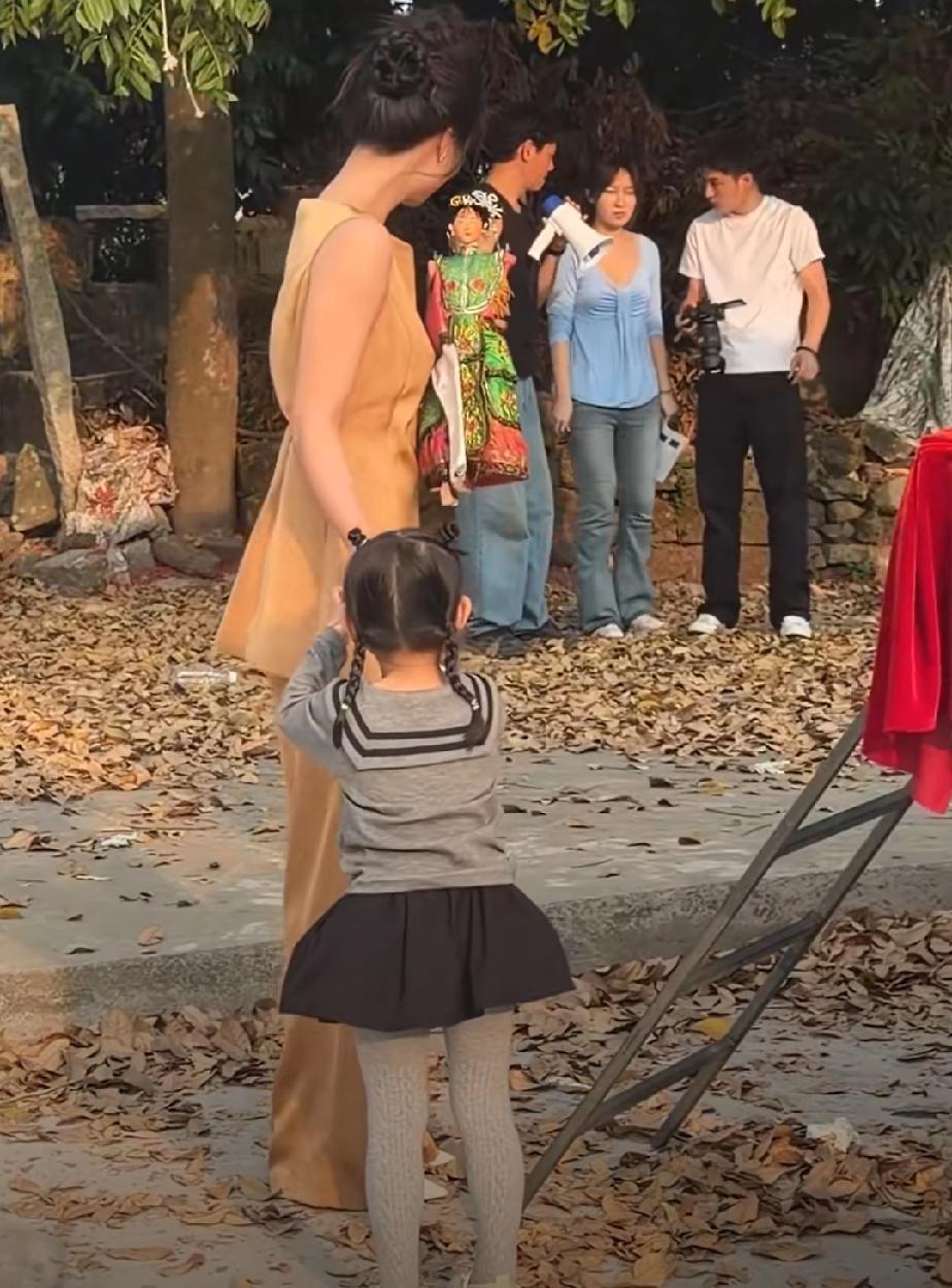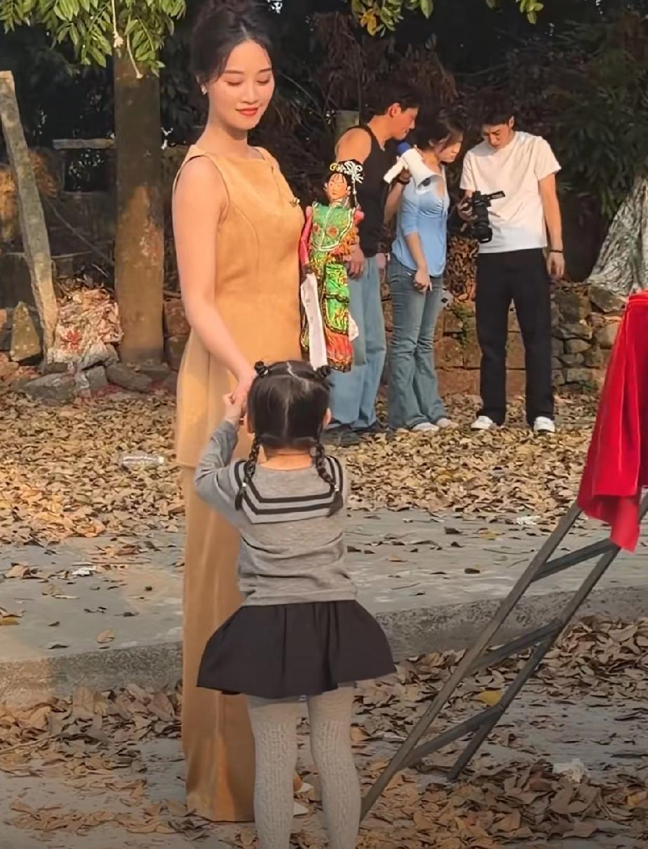蓝盈莹拿着雪糕拍戏的时候,没想到围观的小女孩嘴馋,直接上前把道具雪糕给吃了,蓝盈莹没有责备而是一脸宠溺微笑的看着小女孩。 看得出小女孩是真的馋了,直接上前一口咬住雪糕,身高有点够不着,还拉着蓝盈莹的手吃。 蓝盈莹都被小女孩的动作可爱到了,拍戏时还能遇到一个小馋猫,也是第一次见。