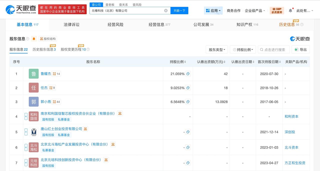 元橡科技(北京)有限公司成立于2017年3月,法定代表人为鲁耀杰,经营范围含专业设计服务、数据处理和存储支持服务、数据处理服务、智能车载设备制造、智能车载设备销售、物联网技术研发等。股东信息显示,该公司现由鲁耀杰、唐山红土创业投资有限公司、北京北斗海松产业发展投资中心(有限合伙)及上述新增股东等共同持股。