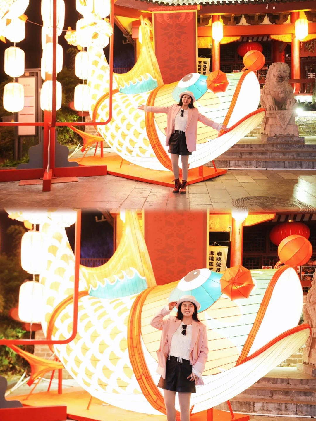 当夜幕降临,我们的脚步移至肥西的三河古镇,作为春晚分会场。白日里的古镇是典型的水乡模样,但当红灯亮起,这里便成了一幅流动的画卷。