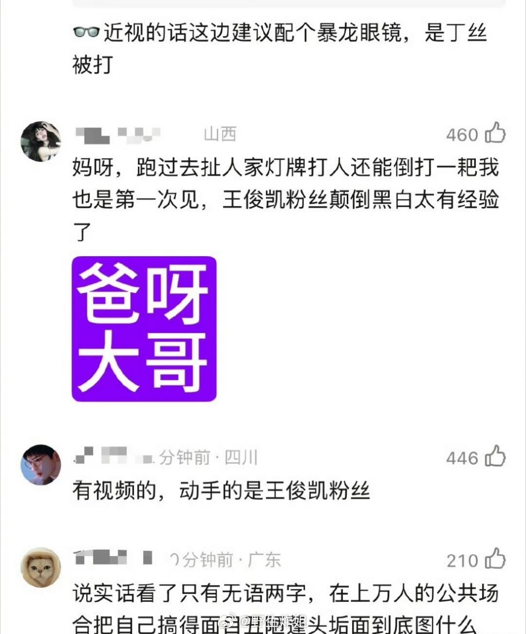 偶买噶,好像是丁禹兮的粉丝跟王俊凯的粉丝互相打起来了,拿着灯牌就在那嚯嚯嚯,这是
