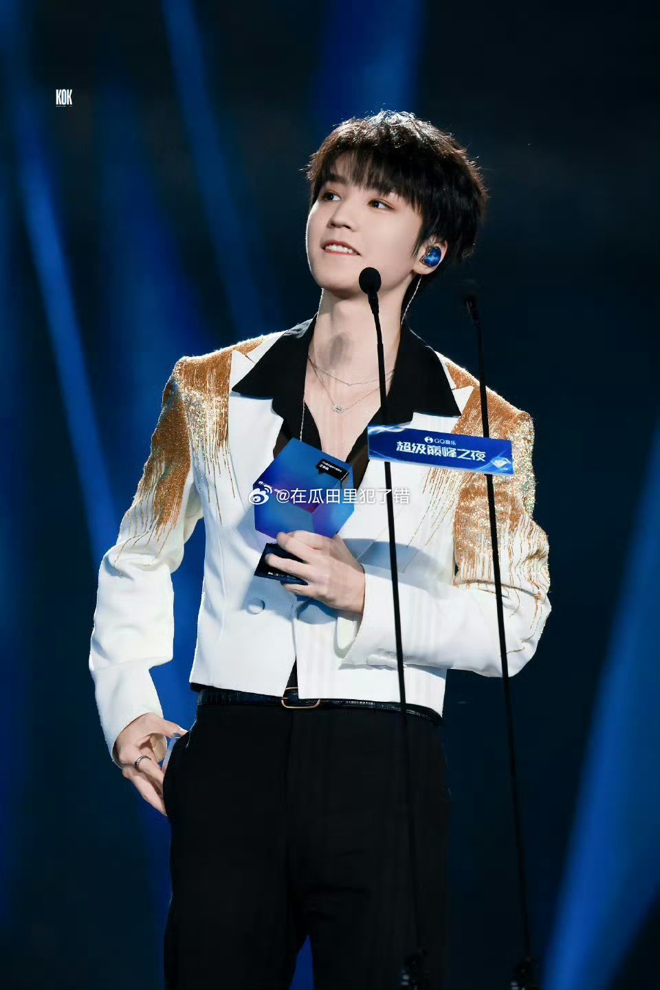 丁禹兮领奖时宣传白日提灯王俊凯,丁禹兮,今晚活动生图王俊凯比心