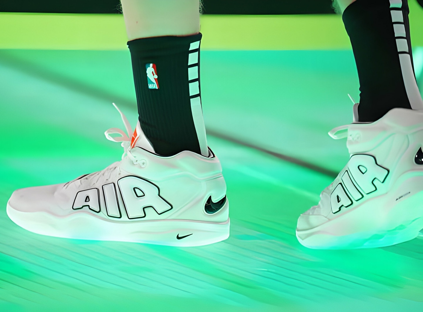 麦基CBA上脚了 Nike G.T. Hustle 2 all star 一个致敬“大AIR”的特别版 正常版本有钩子 只找到配色近似的照片 麦基穿的像是黑色鞋面白色中底的 非市售配色