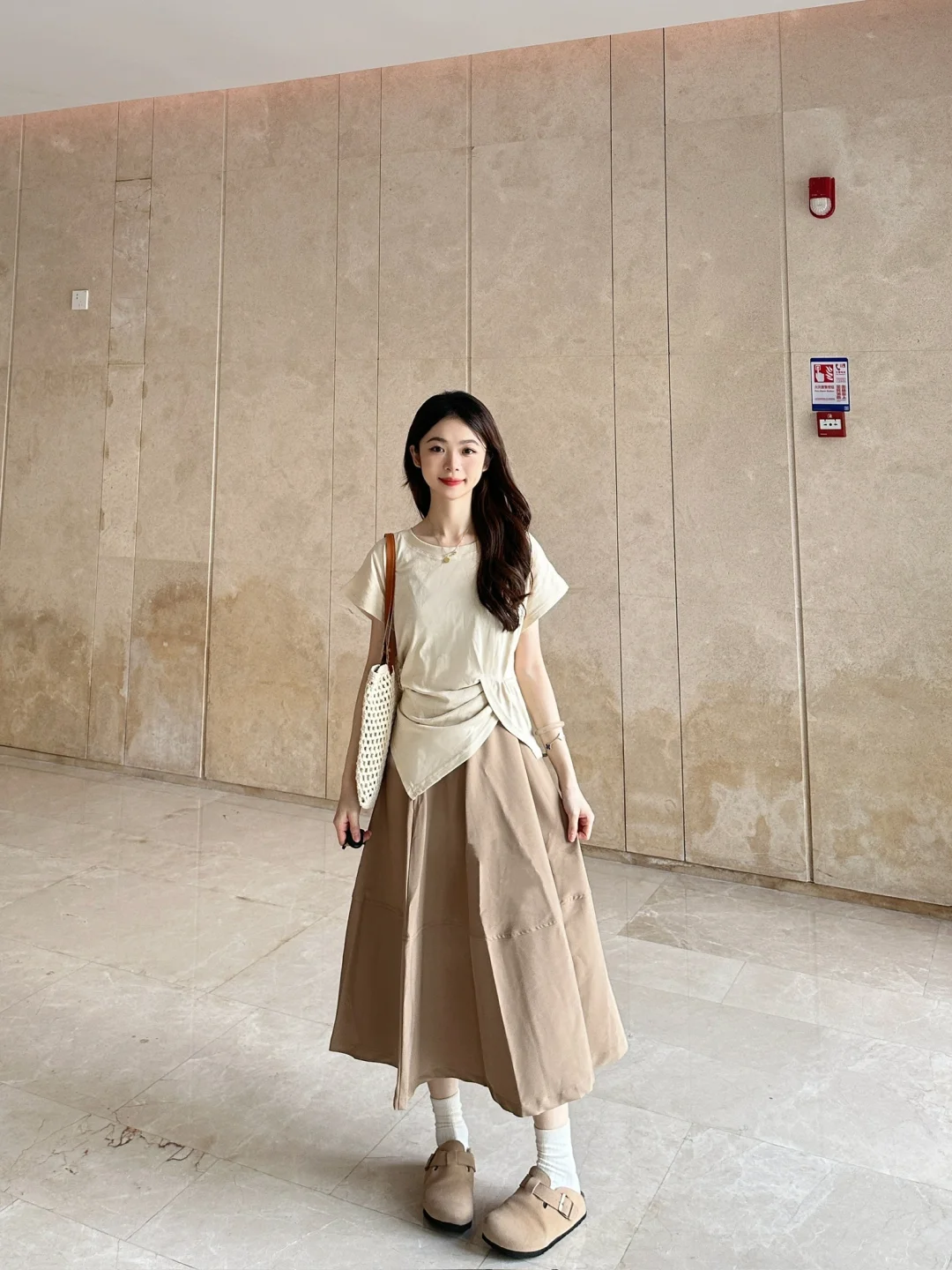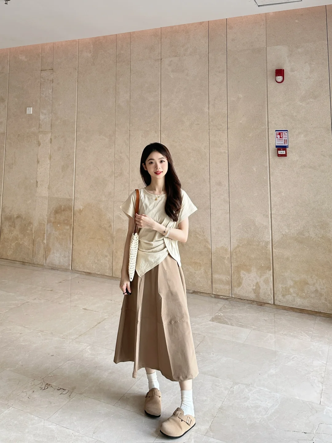 这套穿搭是清新甜美的“休闲+轻甜”组合,很有春日活力感:-上衣选了薄荷绿