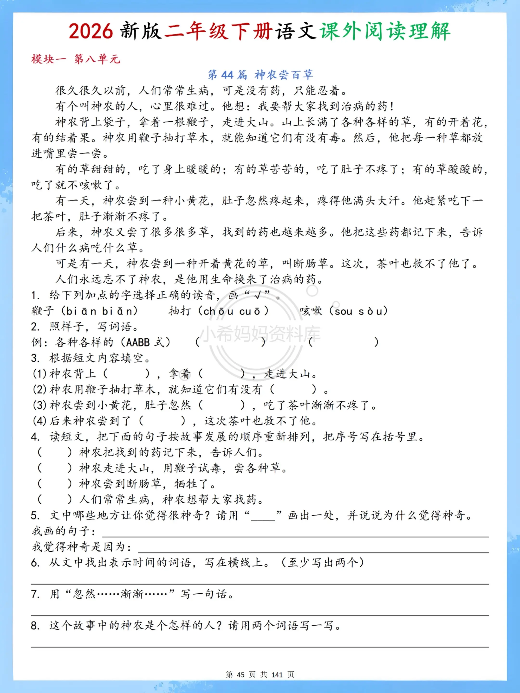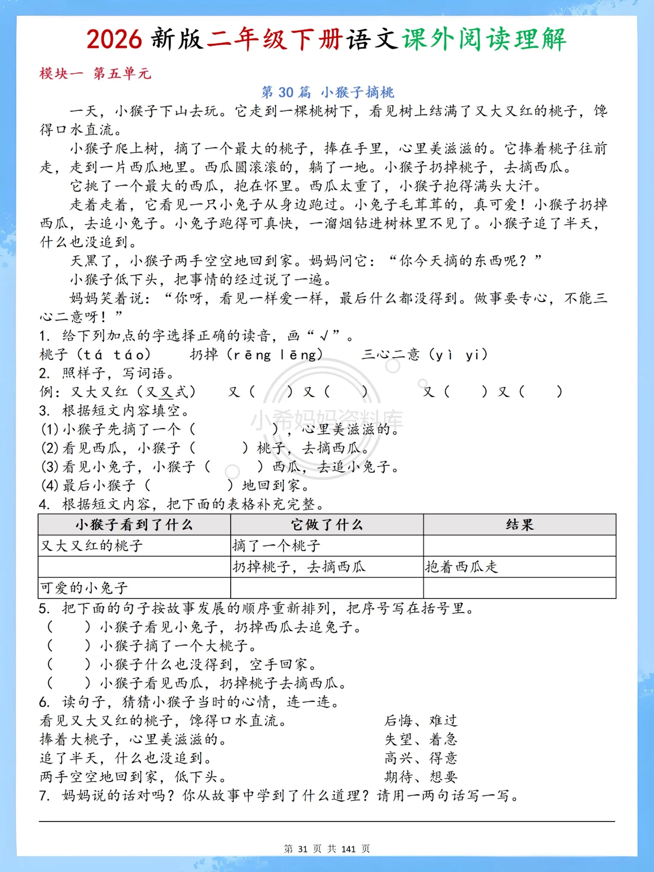二年级下册语文阅读轻松练|70篇贴合课本。家有二年级娃的宝妈看过来!这...
