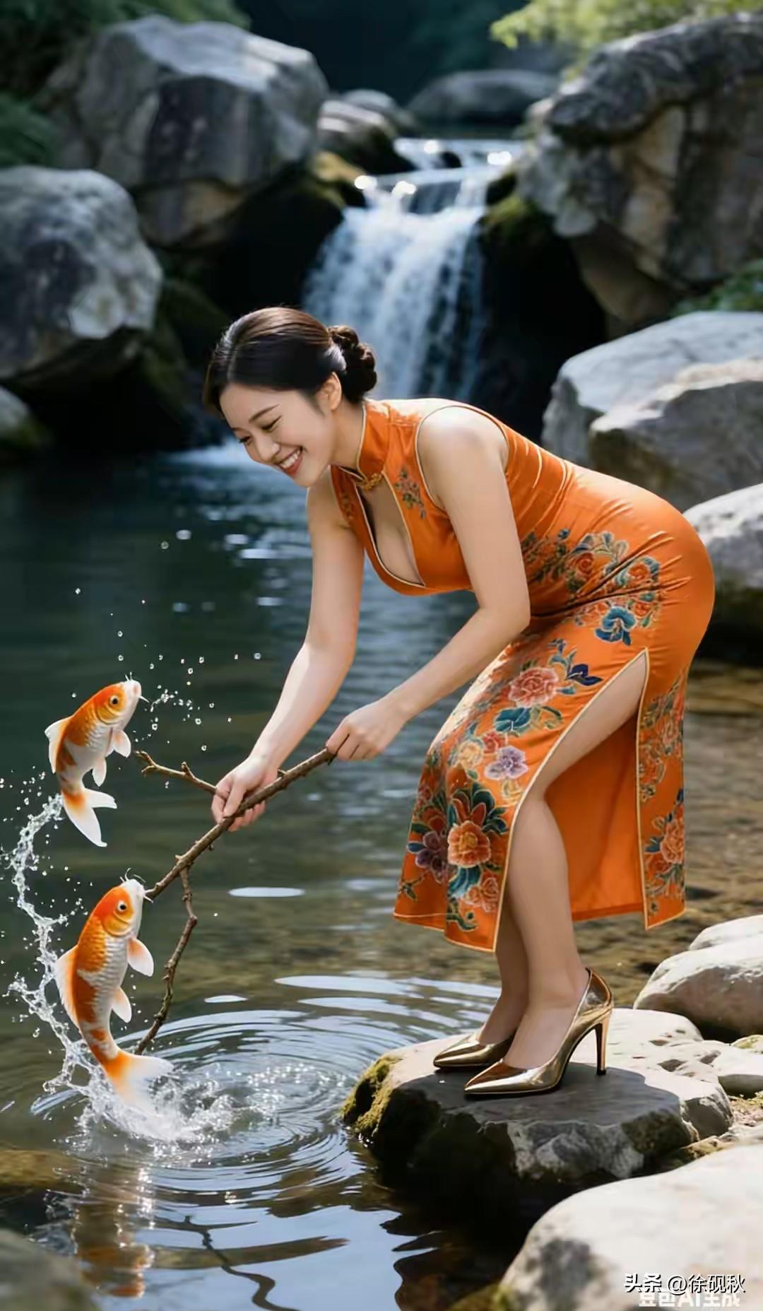 戏钓红鲤鱼。