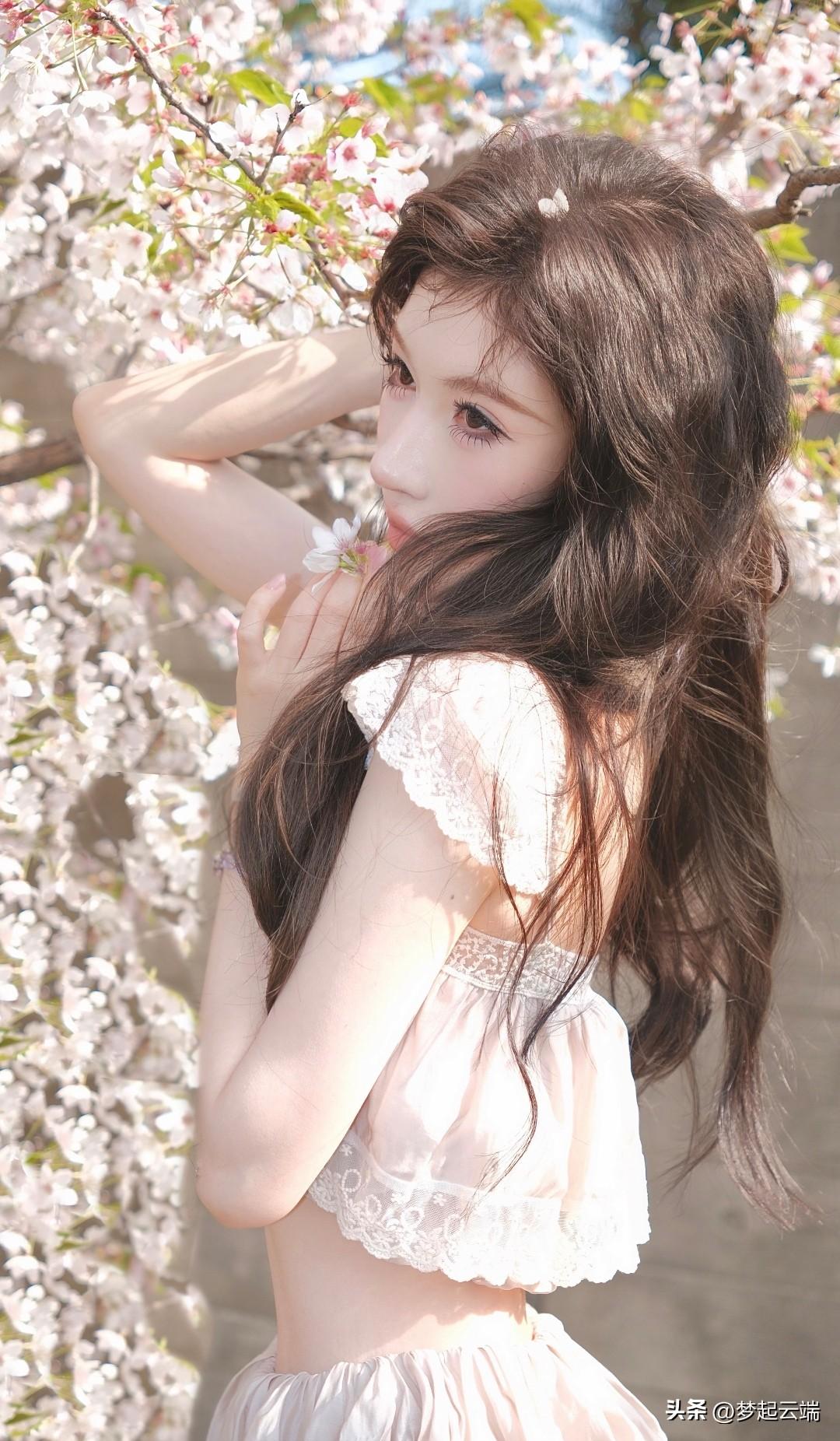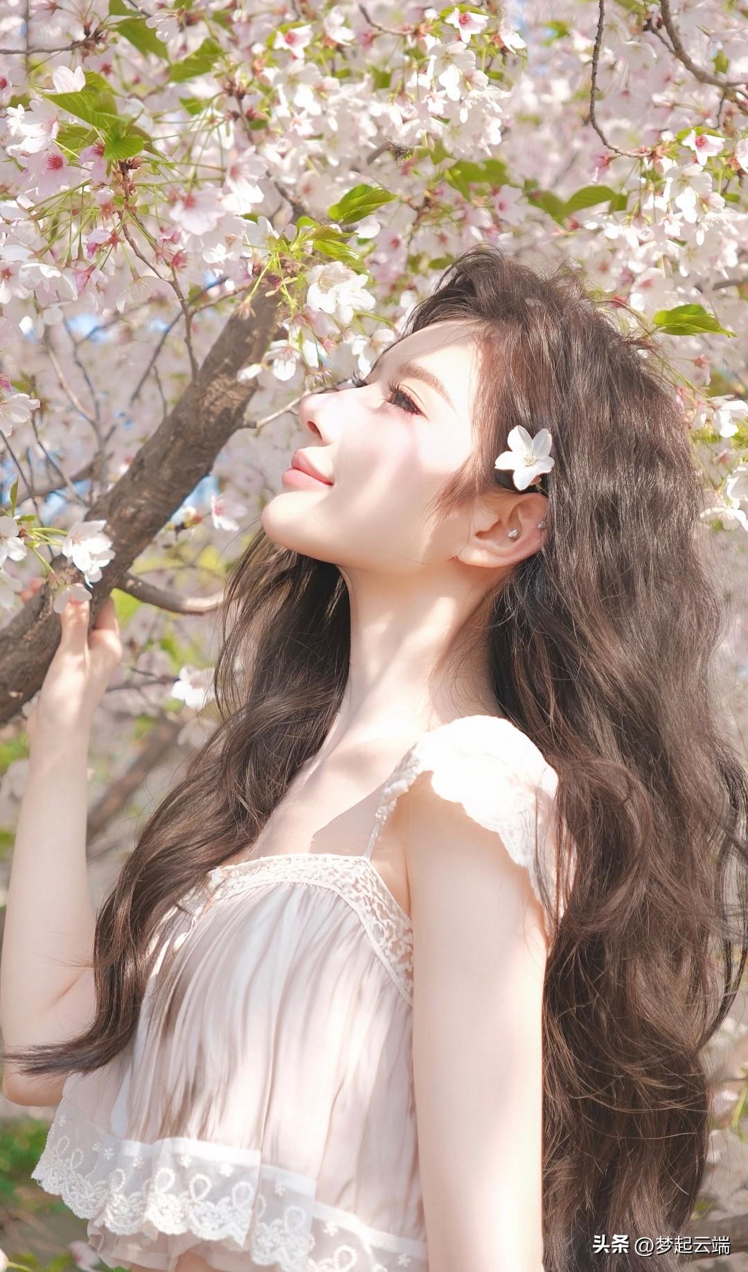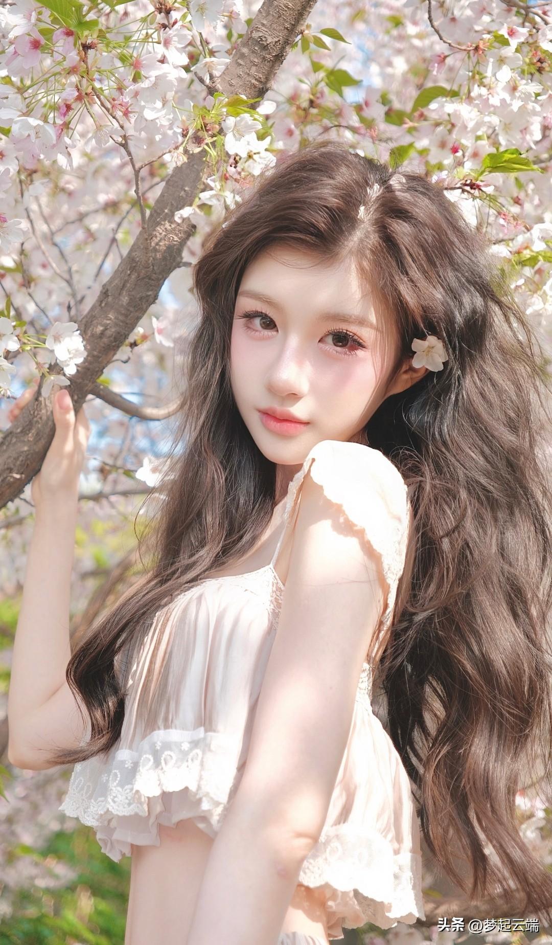 樱花树下,少女轻抚树枝,粉嫩的裙摆随风飘动,宛如童话中的仙境。🌸💕