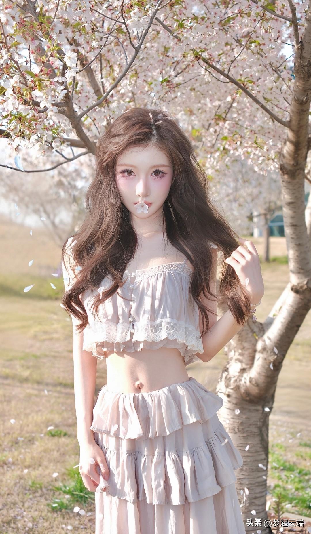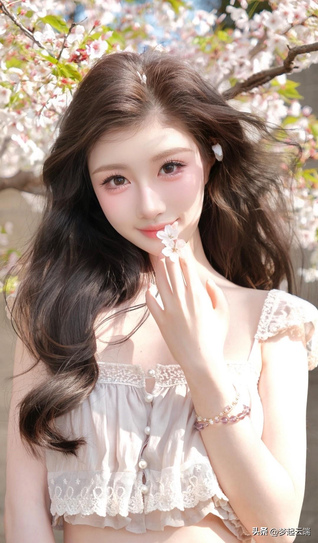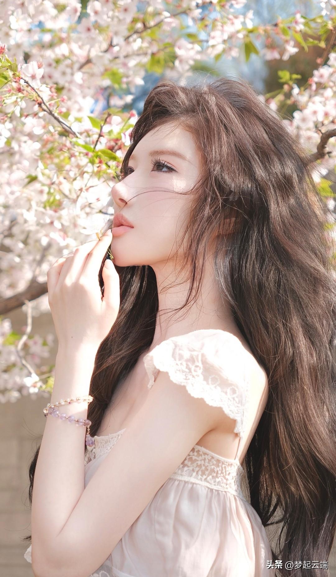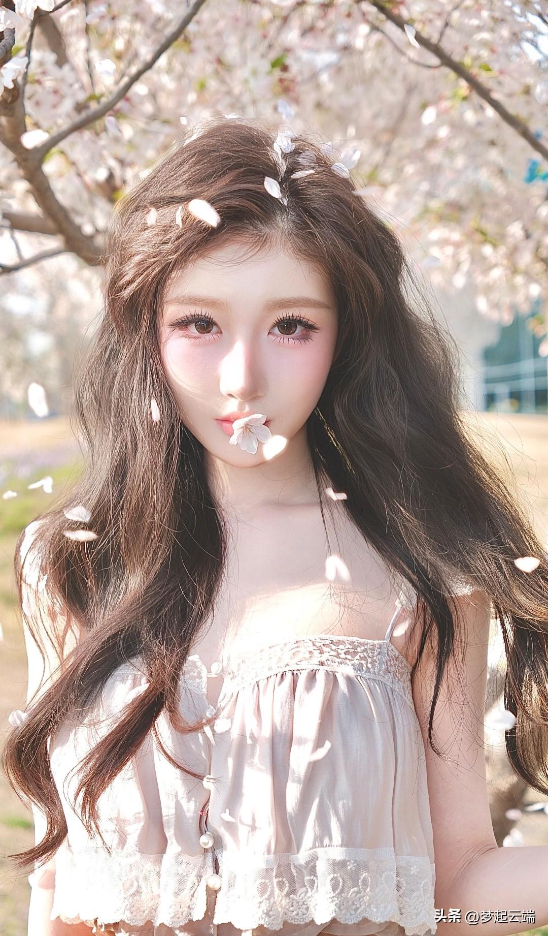 樱花树下,少女轻抚树枝,粉嫩的裙摆随风飘动,宛如童话中的仙境。🌸💕