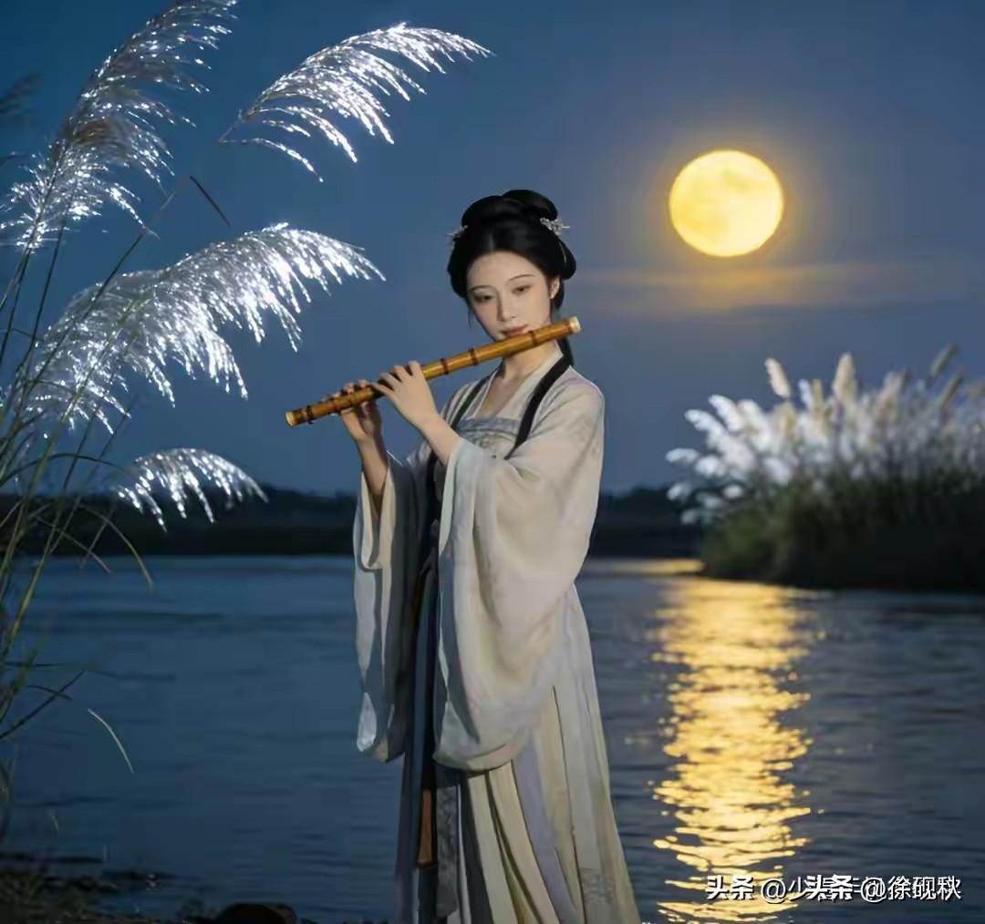 《秋江夜泊》 空江渺渺夜悠悠, 一笛芦花两岸秋。 月照平沙人去后, 遥望婵娟诉情