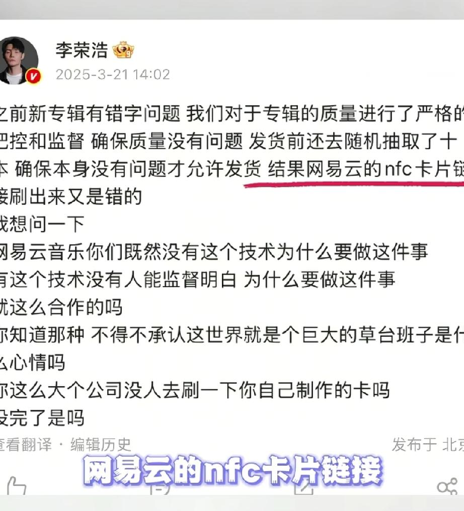 李荣浩在音乐圈那可是有口皆碑,才华横溢,创作了好多经典歌曲,像《李白》《模特》,都火遍大江南北。反观这位想搞事情的,本以为能靠爆料啥的让李荣浩名声扫地,可倒好,网友们一深挖,发现这人黑料一堆,什么虚假宣传、人品问题全被曝光。只能说,娱乐圈水太深,想搞别人前先看看自己几斤几两,不然就像这次,赔了夫人又折兵,成了大家的笑柄。 李荣浩经典老歌 对李荣浩 李荣浩金曲