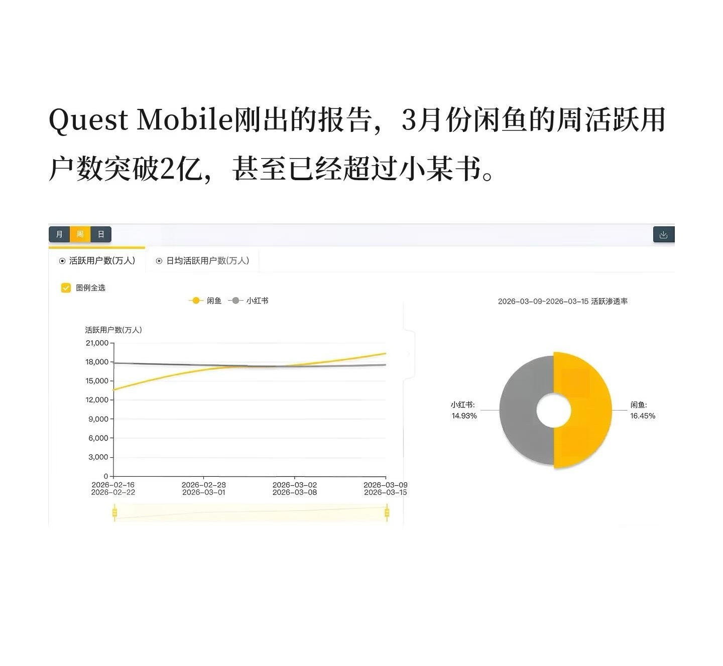 魔幻,闲鱼活跃用户数破2亿😱今天看到一组数据,直接给我打懵了...…
