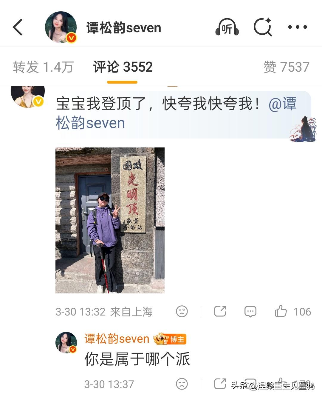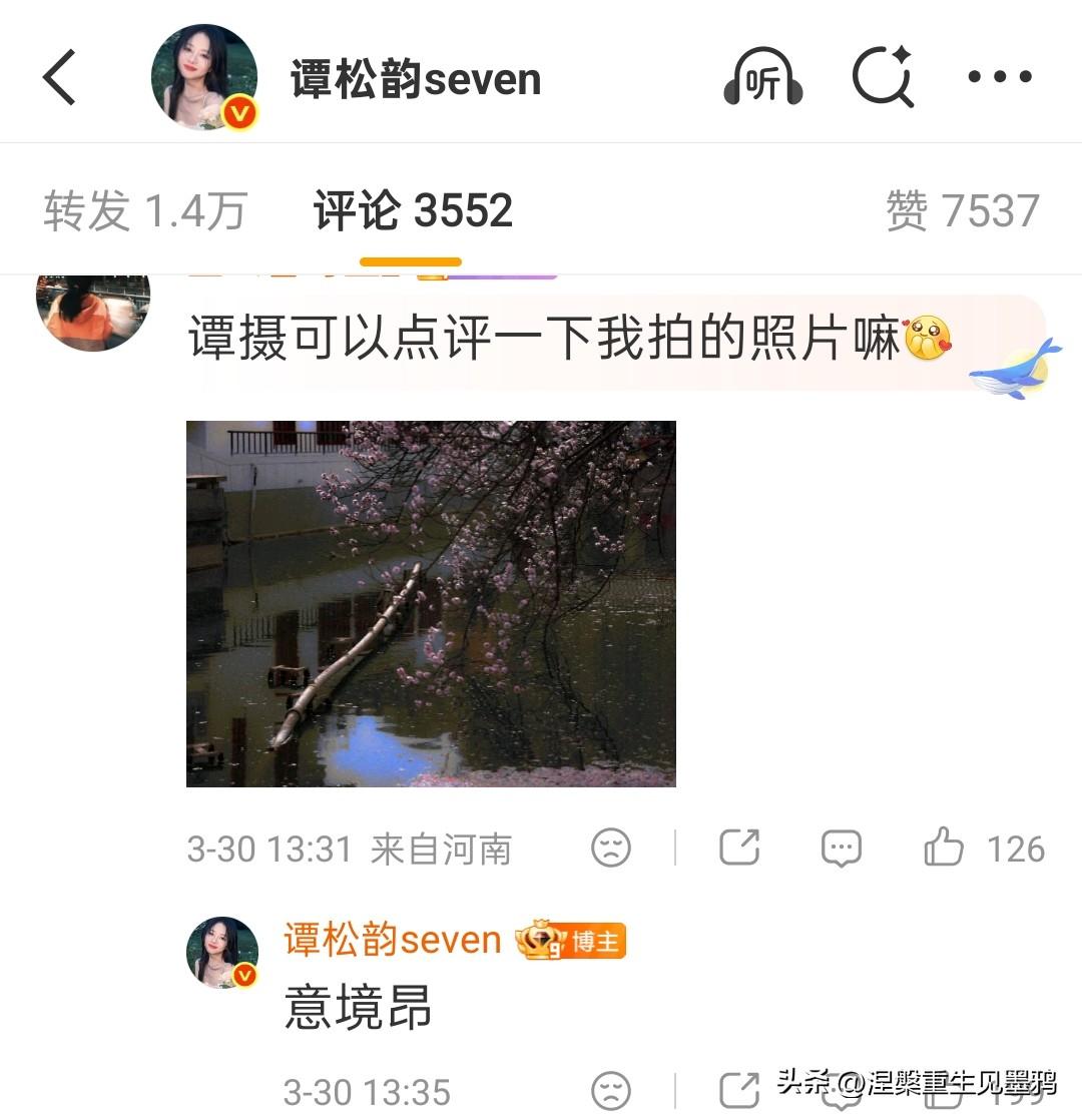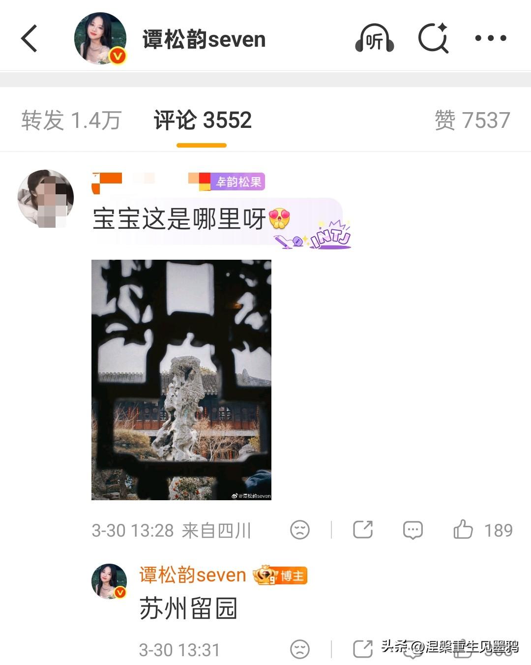 谭松韵新动态与宠粉可爱瞬间 谭松韵在2026年3月30日发布了动态,在发文中充满了生活的小趣味。她用“含谭摄量100%”这样俏皮的文案,搭配一条plog告别三月的话题,分享了自己眼中的春日景致,有古典园林里的奇石、绽放的花枝,还有那碗被她精心“打扮”成可爱模样的米饭,仿佛把三月里的美好都装进了这些照片里,带着一种对生活的热爱和对时光的温柔告别,也让粉丝能透过这些画面,感受到她当下的小确幸。 宠粉里的暖心意 谭松韵的宠粉行为也满是可爱与真诚。她会认真回应粉丝的互动请求,就像粉丝询问照片相关问题时,她会留意并给予反馈;还会发起像