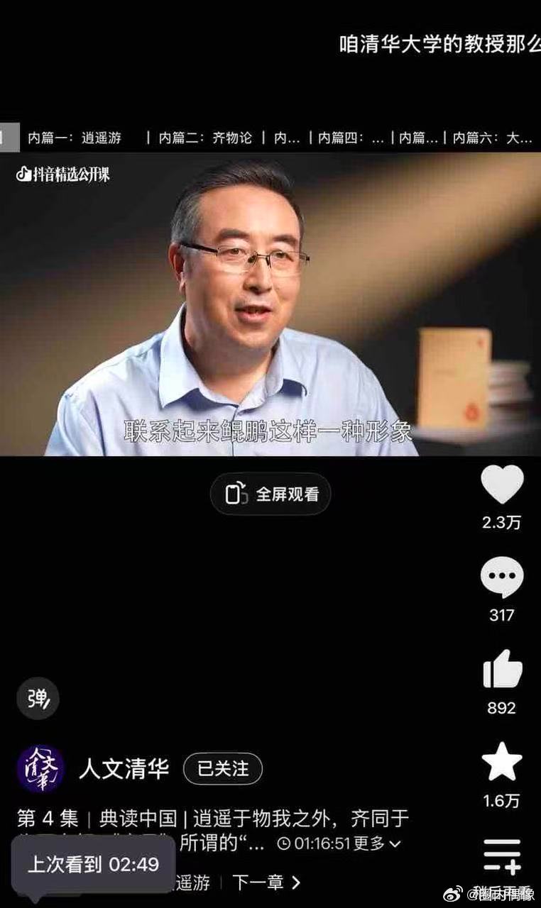 说实话,以前总觉得"清北名师公开课"是遥不可及的存在——要么付费才能收听,要么只面向高校内部。普通人想系统听一节,不仅要费心找资源,还可能遇到内容残缺、解读不权威的问题。直到遇见dy精选的公开课板块,我才真正体会到什么叫"学术平权"。也终于明白,为什么越来越多人愿意在这里看公开课、学经典。这份含金量,远超预期。它不是零散搬运,而是经过严格筛选、官方合作的优质资源。就像我刷到的清华大学孙明君教授的《读庄子》——主讲人是清华人文学院资深教授,深耕古典文学多年,解读的权威性和专业性,普通博主根本比不了。在其他平台找类似的解读,内容不是碎片化就是逻辑混乱,听完还是一知半解,甚至被错误解读带偏。而在dy精选,点开就是孙明君教授的完整公开课。不用费心筛选,不用忍受广告,每一节都干货满满、逻辑清晰。这种"不费力就能学到权威知识"的体验,真的太省心。孙明君教授对《庄子》的解读,就像一剂精神解药。他从《逍遥游》的鲲鹏寓言入手,对比鲲鹏与斥鴳的小大之辩,一点点拆解"至人无己"的最高境界。原来庄子的逍遥,从不是消极避世的逃避,而是看透苦难后的积极从容,是摆脱世俗执念、不依赖外物的自在。"乘天地之正,御六气之辩"——这才是活出本真。最戳我的,是教授对《齐物论》和生死观的解读。他以"庄周梦蝶""吾丧我"阐释"物化"真谛:忘掉自我,才能物我相融,这正是进入逍遥境界的关键。而那句"知其无可奈何而安之若命",更像一剂定心丸——视生为劳作、老为休息、死为长眠,以"运心若镜"的心态,守住内在德性,不被得失牵绊。我现在通勤、午休、睡前,都会打开dy精选刷一些优质公开课。不用手动找合集,刷完一节自动衔接下一节。不用刻意抽出大块时间,就能在潜移默化中汲取经典的力量。没有广告打断思路,没有杂乱内容干扰——每一次打开,都是纯粹的知识滋养。其实我一直觉得,dy精选公开课的真正珍贵,从不是什么花哨的卖点。而是它让顶尖学术资源变得触手可及,让我们普通人也能免费听到清北名师的解读,真正实现学术平权。不用为资源付费,不用为筛选费心——在浮躁的时代里,这里是一处安放心灵、汲取力量的角落。如果你也常常焦虑、迷茫,想找一份精神寄托,想读懂《庄子》的逍遥智慧——不妨打开dy精选,搜索清华大学名师公开课《读庄子》。跟着孙明君教授,在经典中洗涤心灵,学会与自己和解、与生活和解。也趁这个机会,感受一下dy精选公开课的含金量,在学术平权的福利里,轻松收获成长与从容。