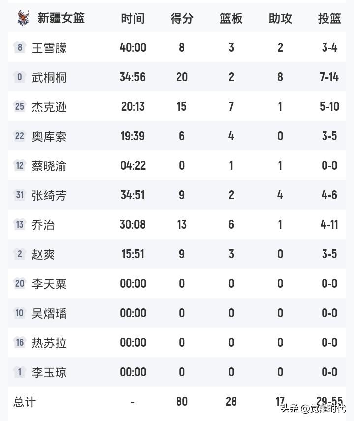 曹君伟19+5 杨衡瑜11+ 山东女篮86-80新疆 首轮大比分1-1 武桐桐2