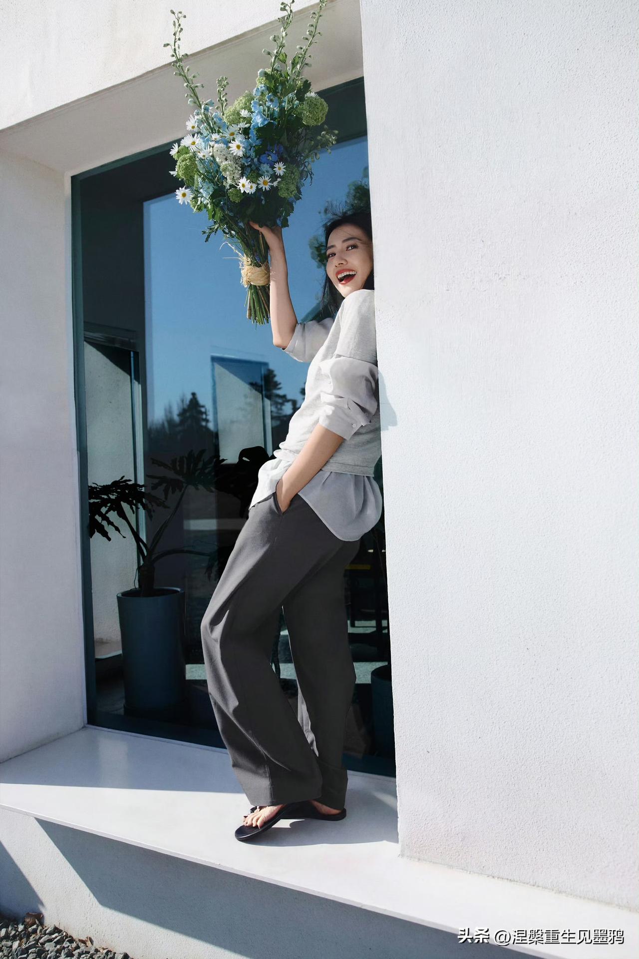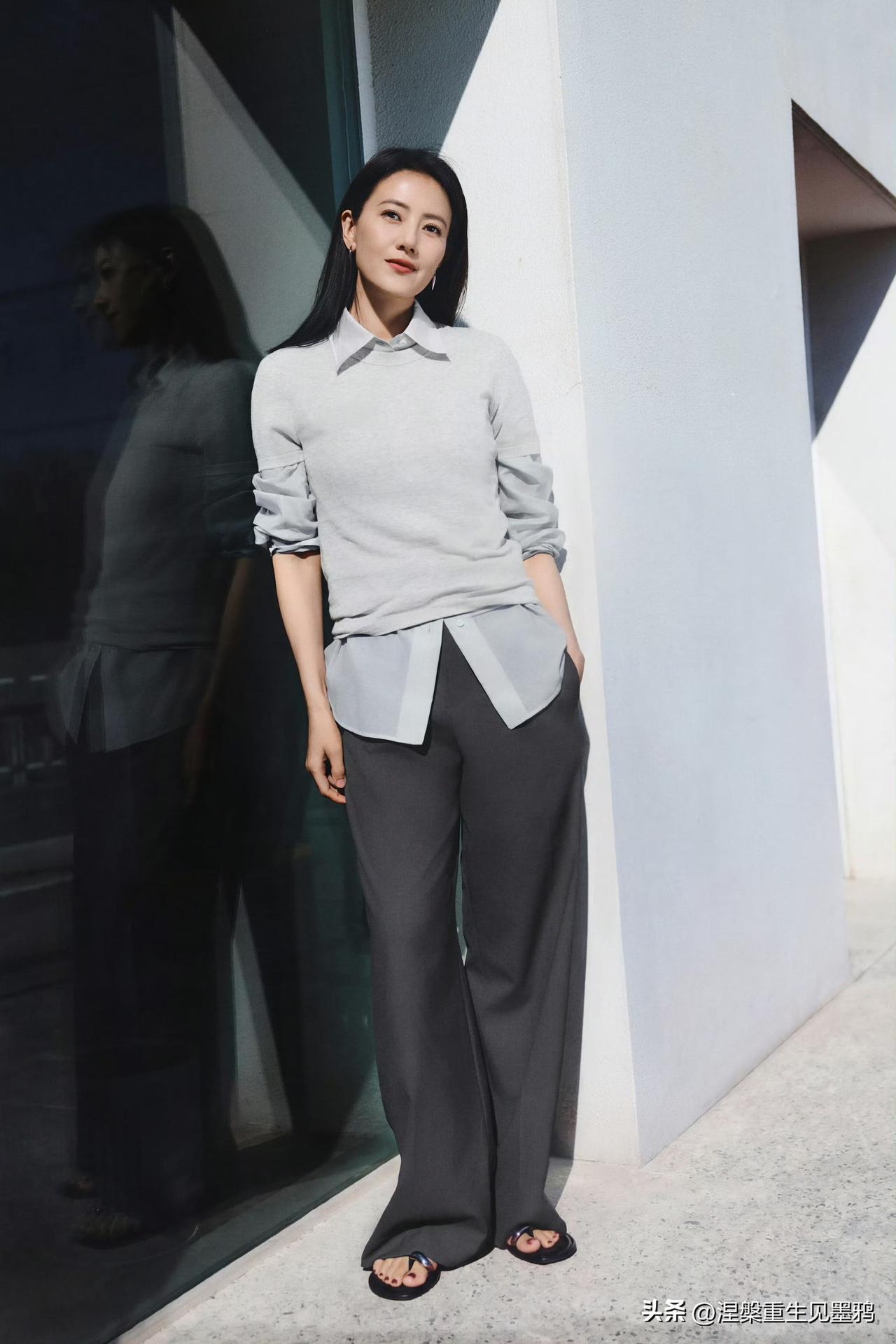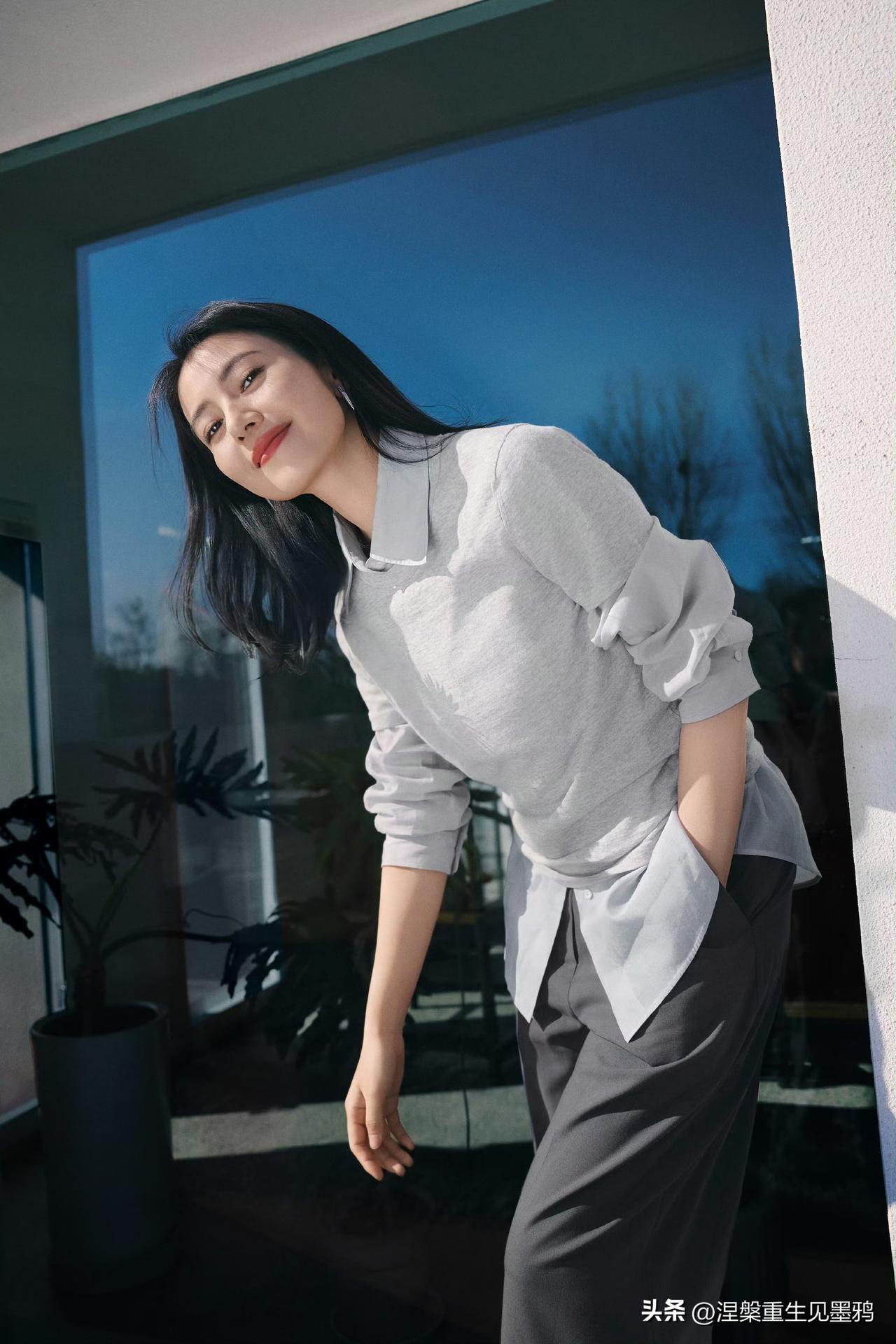 时光从不败美人,永远的国民女神高圆圆。岁月在她身上没有留下焦虑的痕迹,反而沉淀出一种从容不迫的优雅,让她在“国民女神”的光环之外,更添了一份知性与松弛的生活质感。 在这组照片中,高圆圆身穿浅灰色针织衫叠穿衬衫,搭配深灰色阔腿裤,整体造型简约干净,却处处透着高级感。没有繁复的装饰,仅靠舒展的体态和温和的气场,就营造出一种“毫不费力”的美。这种美不是年轻时的清甜惊艳,而是经过时间打磨后的温润大气——眼神柔和,嘴角含笑,举手投足间都带着一种让人安心的亲和力。 高圆圆最动人的仍是那抹治愈系笑容:笑起来时眼角自然弯起,笑意从眼底漫开,像春日阳光洒在脸上,温暖而不刺眼。无论是手捧花束低头浅笑,还是倚墙而立望向远方,她都散发着一种由内而外的舒展与自在。这种气质,正是她被称为“国民女神”的核心——不张扬、不刻意,却总能用最温柔的方式打动人心。 从《倚天屠龙记》的周芷若到《咱们结婚吧》的杨桃,再到近年《走走停停》中的母亲角色,高圆圆始终用作品诠释着不同阶段的女性力量。而如今镜头前的她,更像是一位懂得与生活和解的智慧女性——美得不急不缓,笑得真诚坦荡,让人相信:真正的女神,从来不会被年龄定义,只会因时光而愈发迷人。