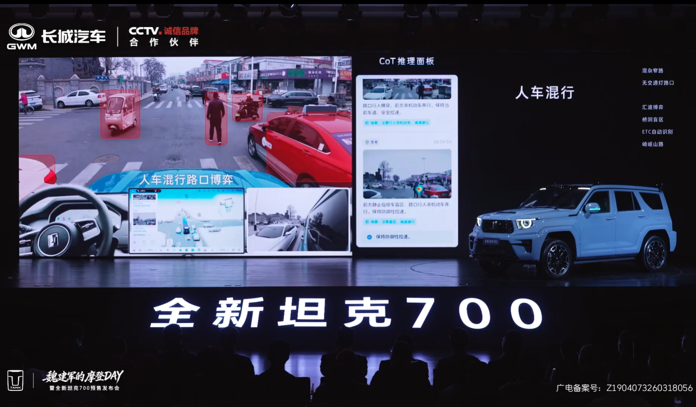 全新坦克700在辅助驾驶方面搭载了长城的全新一代Coffee Pilot4 辅助驾驶系统,实际表现中,在一些混杂窄路、无交通灯路口、人车混行等等路况下,表现还是非常不错的。