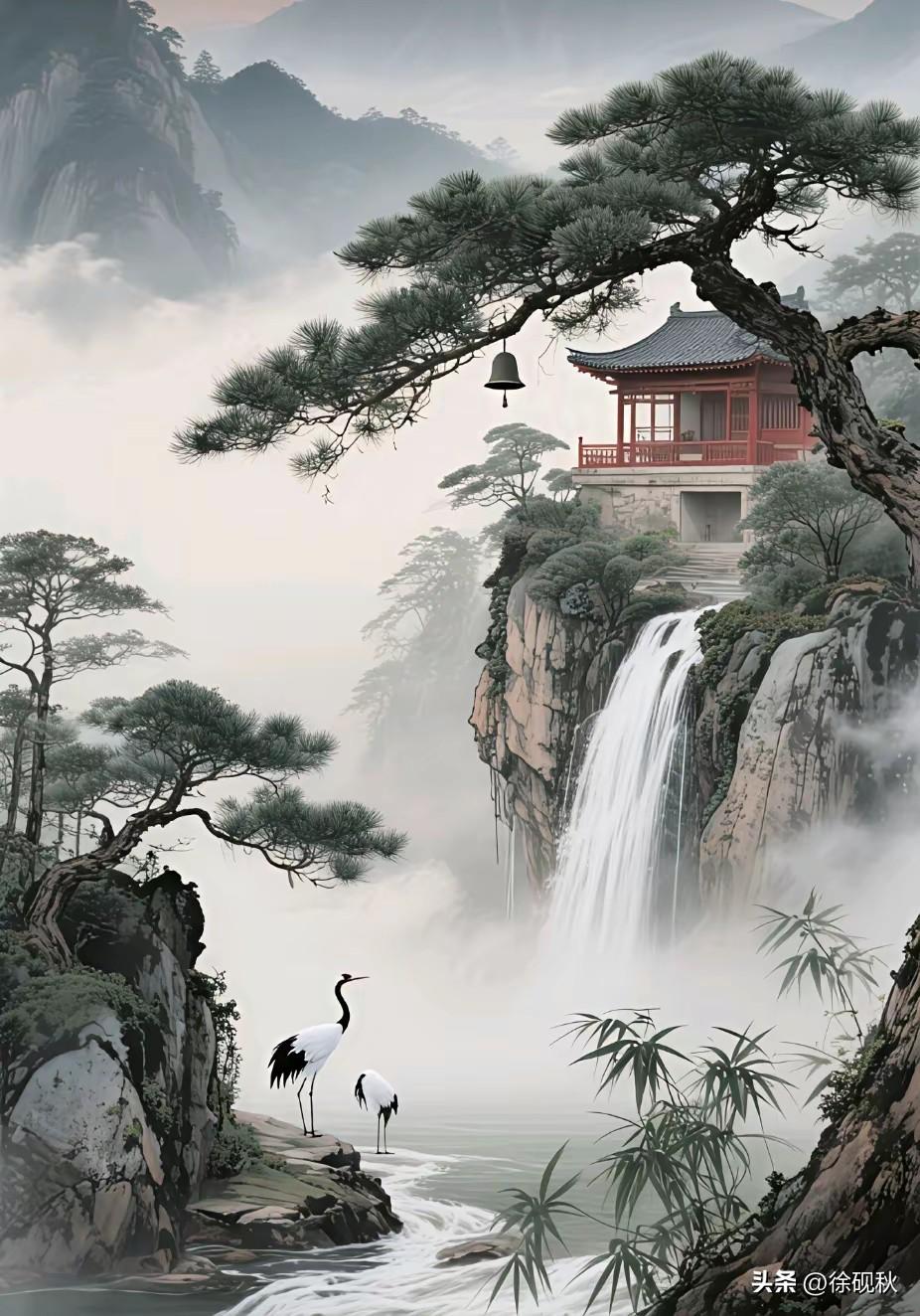 山泉九曲漱清音, 茅舍灯明映翠林。 且枕溪声听杪语, 流水潺潺击石鸣。
