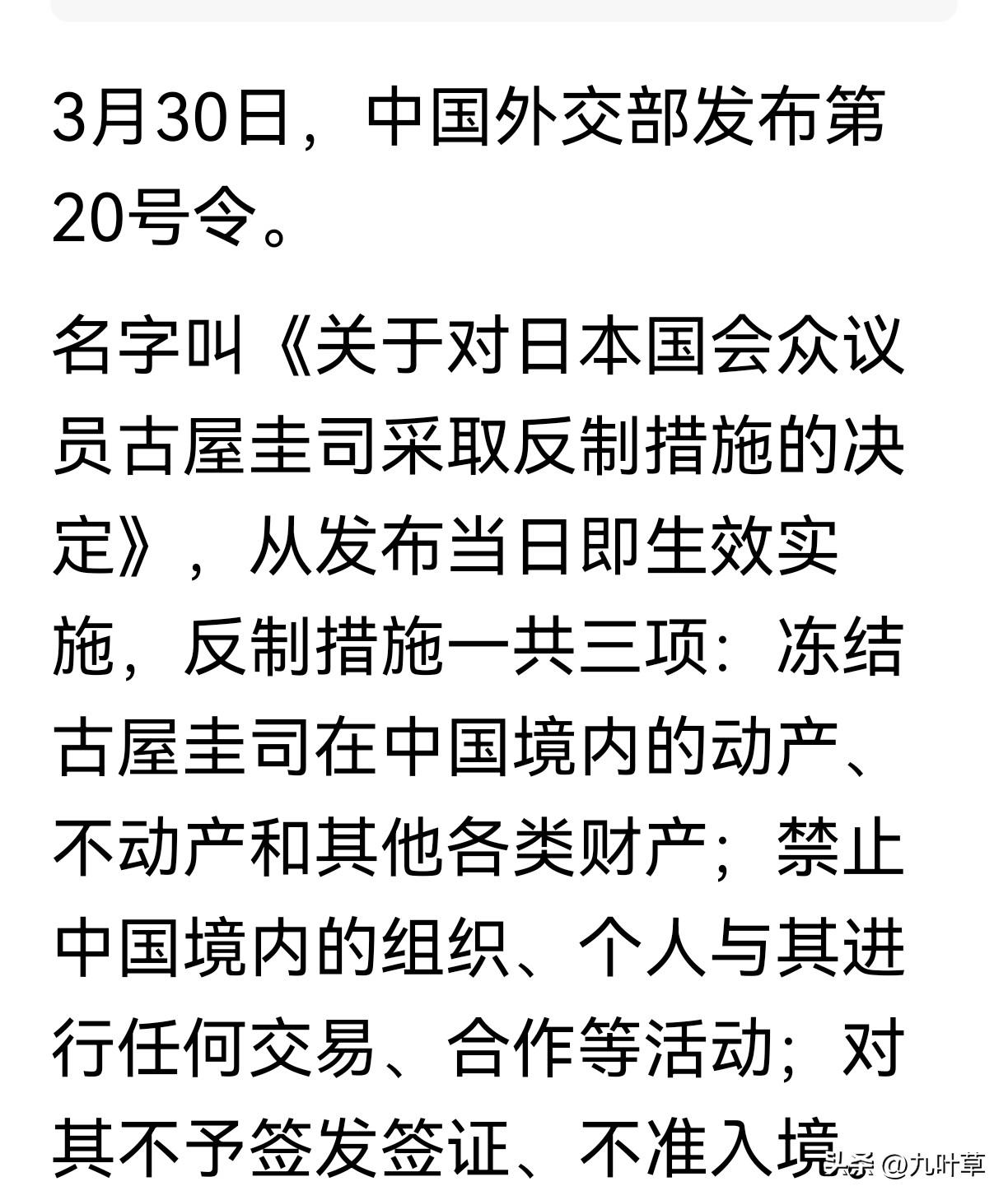 你看看(下图截屏): 冒不冒火🔥, 生不生气, 不冒火不生气的, 那和猪狗差不多, 肠子切得所剩无几, 还是严正哪个啥的 人家该去还是去了 该穿越海中间还是穿了, 谁都可以来恶心你一把! 特别的窝火!!! 谁来横刀立马? 东风你在哪里? 巨浪你出来走一趟吧, 帝国鬼子贼心不死呀, 一个他X的古屋圭司还专门发一个20号, 真的是耻辱! 四个跳梁小丑也敢蹦跶? 佩洛西之流不亡, 山河再美也还有缺憾, 国家再强大总感觉少了什么? 一个小市民都心难平, 你就好意思整天口号喊着吗?
