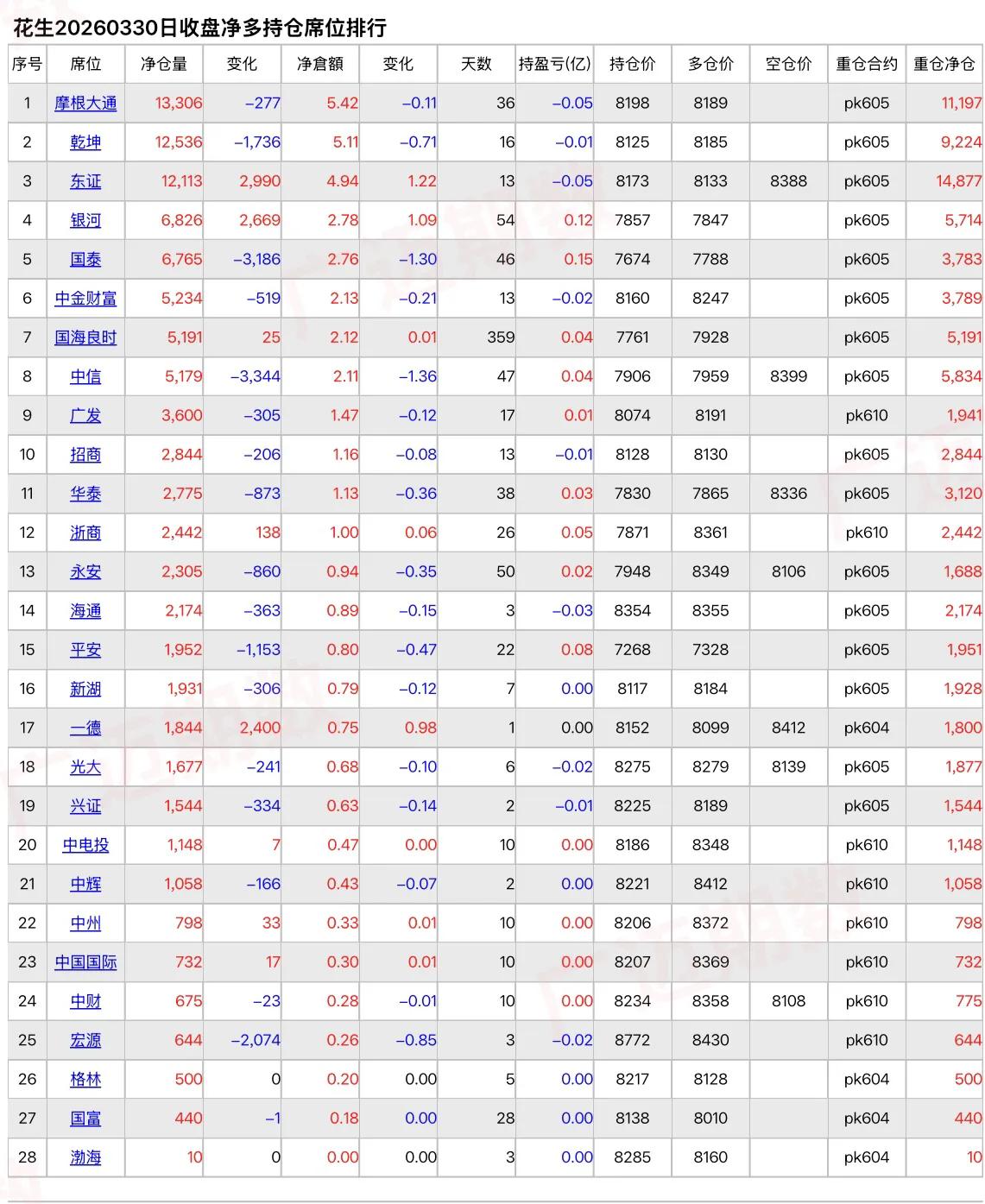 花生回调,难道前两天假突破了? 持仓方面摩根大通、乾坤、东证依然领衔净多前三,三