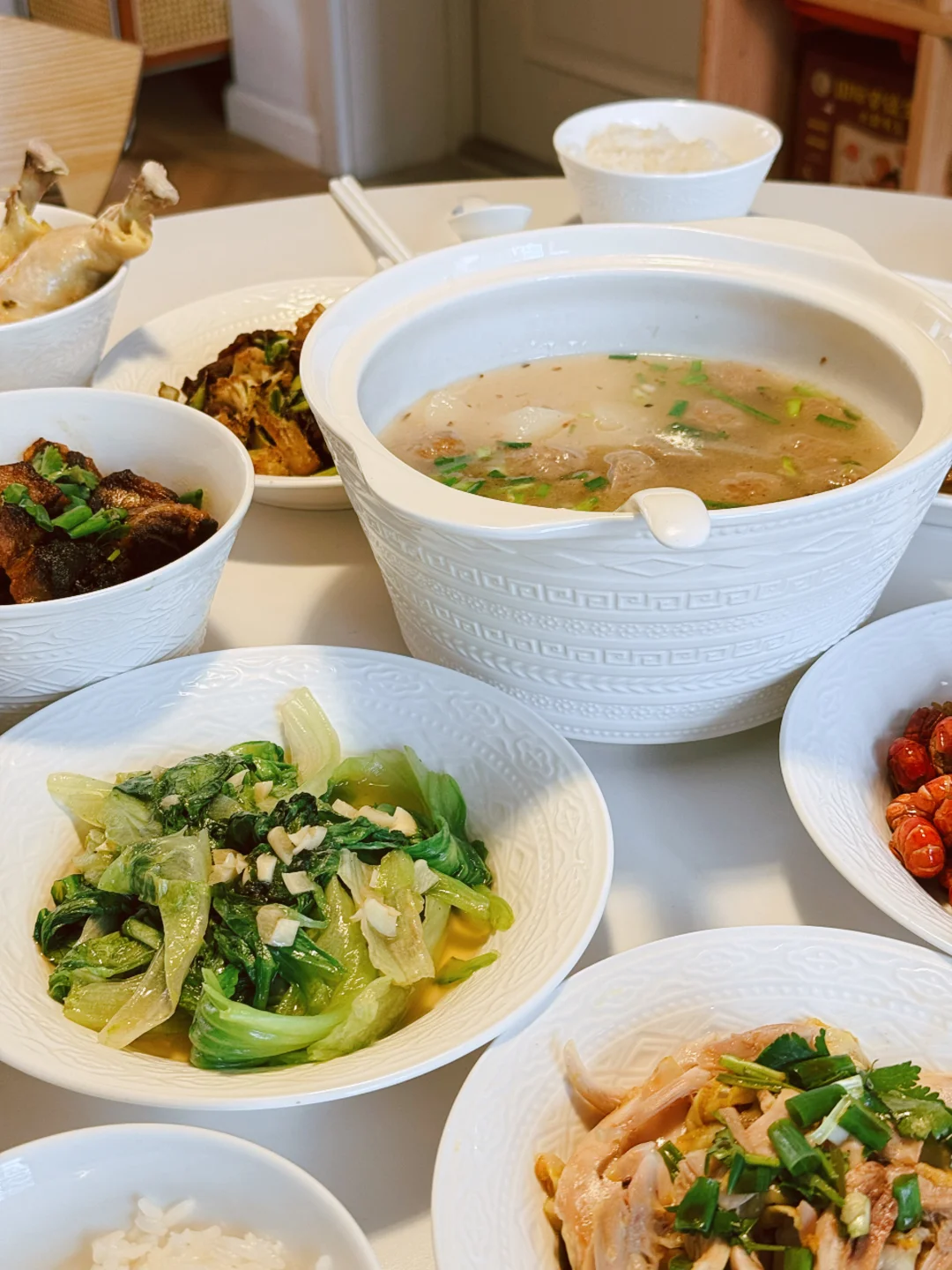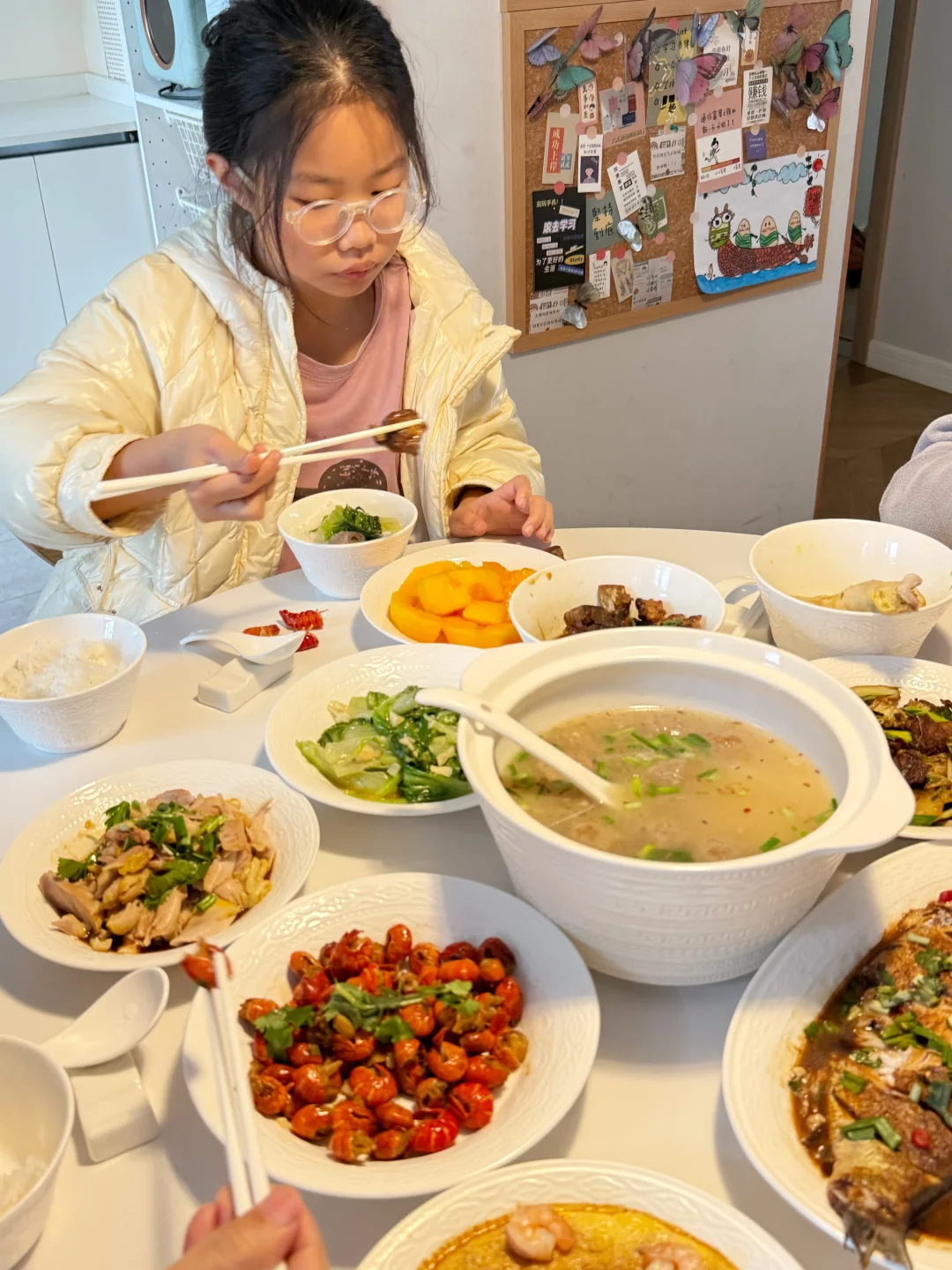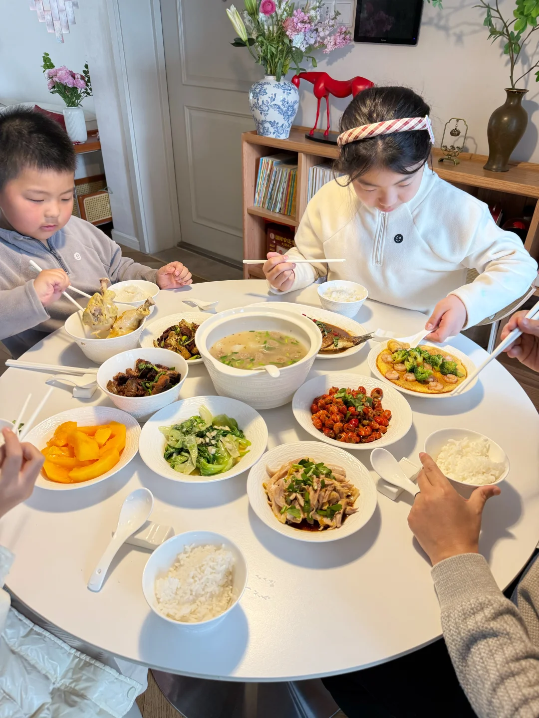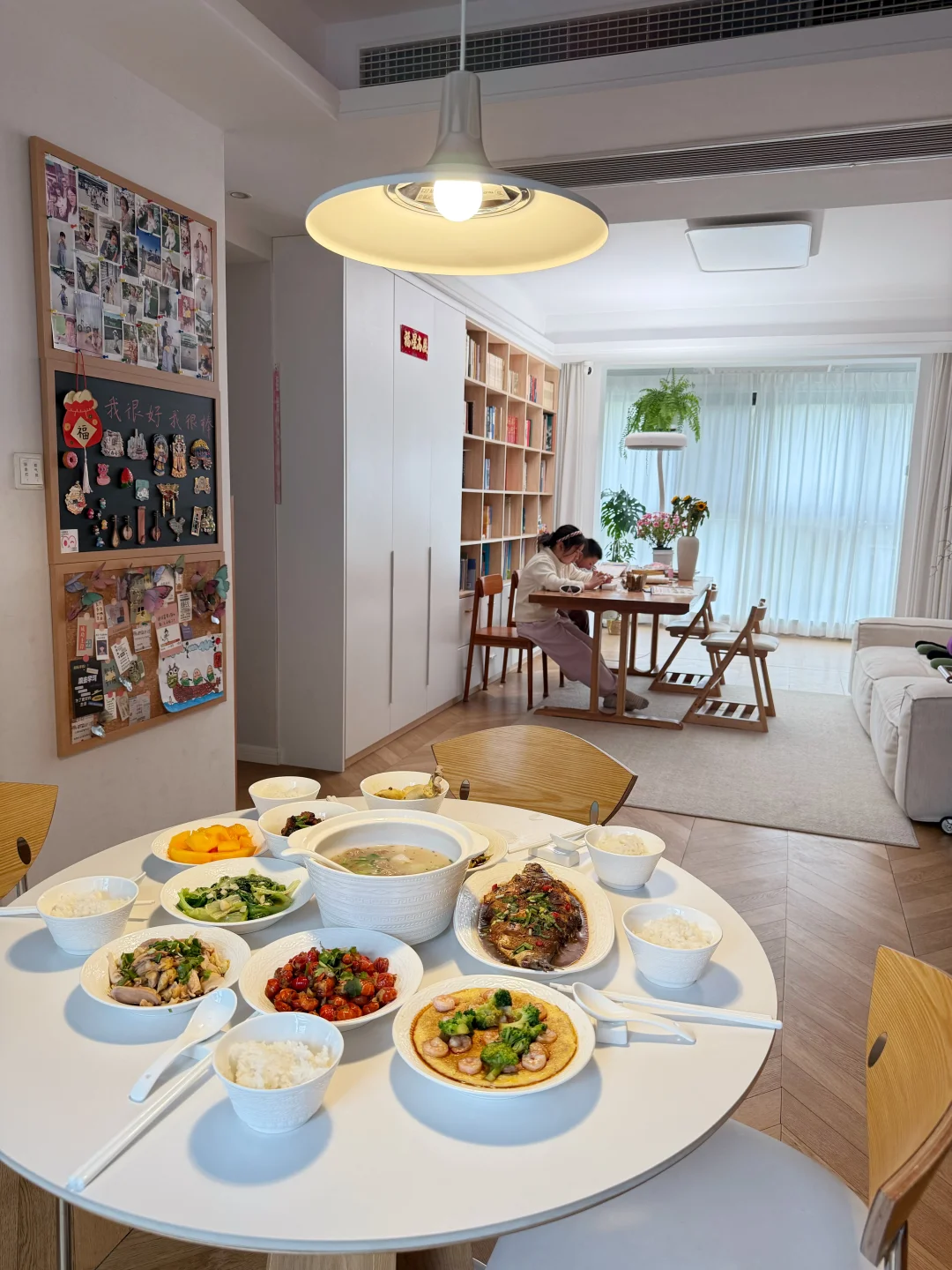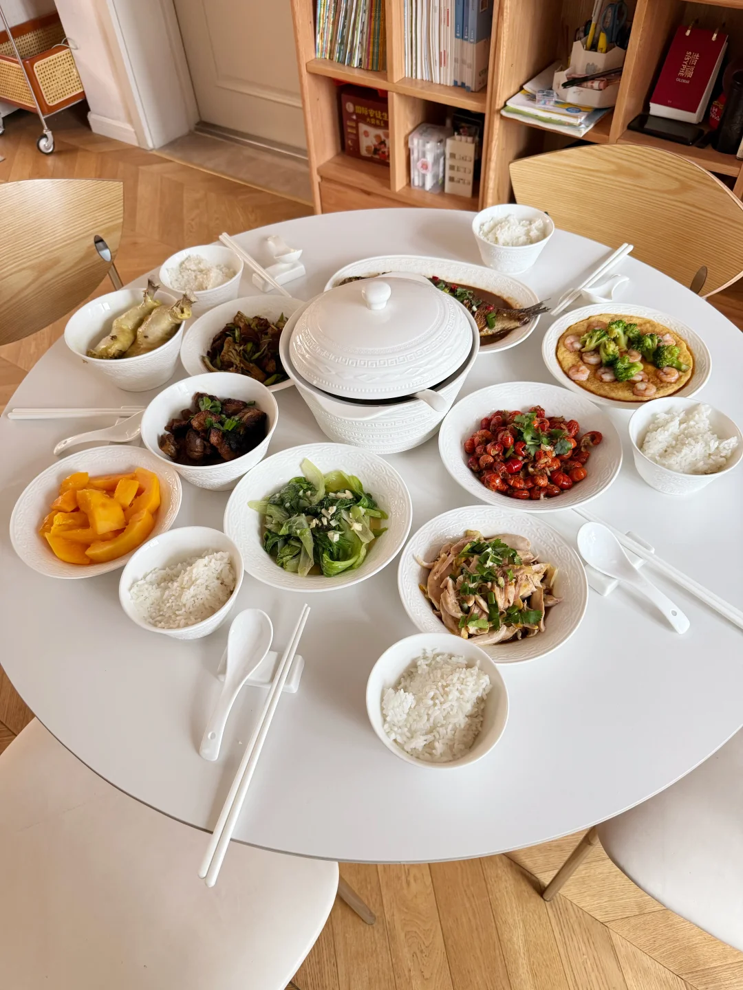 周末最解压的事, 就是给孩子们做一桌子家常菜 不用赶时间,不用忙工作 安安静静在厨房忙活 把热气腾腾的饭菜摆满一桌! 我家餐厅一米的小圆桌, 看着不大,却超实装! 摆上七八个家常菜也妥妥放下, 满满一桌超有食欲! 新换上的白色餐具🍽️干净又温柔, 赏心悦目,连饭菜都变得更有味道了~ 看着孩子们大口干饭的模样 所有的辛苦都烟消云散 疲惫在这烟火气里被悄悄治愈 一家人说说笑笑,就是最踏实的幸福~