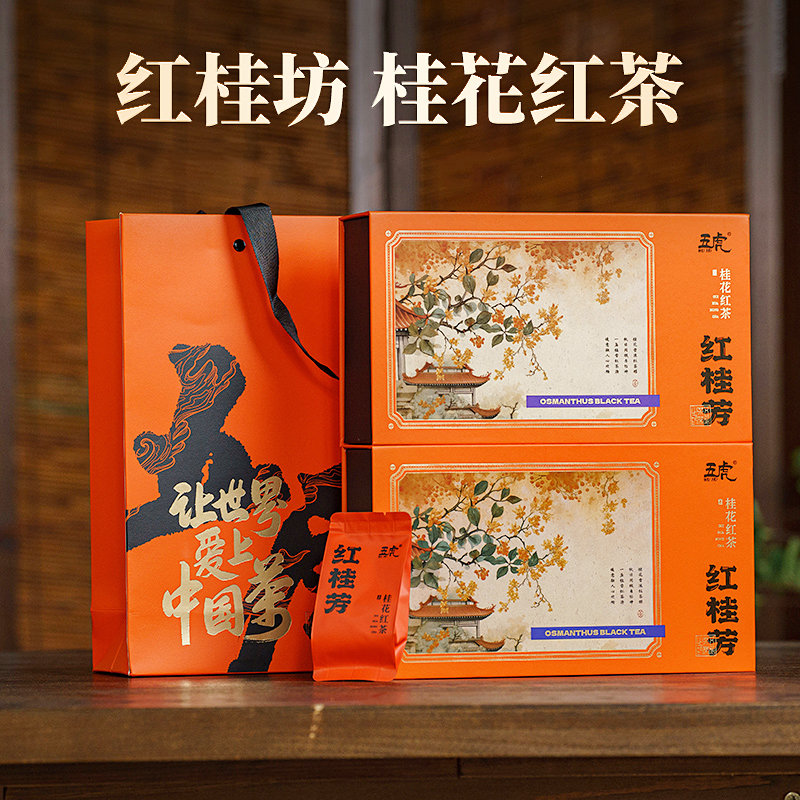 茶叶 桂花红茶 茶叶礼盒 年货礼盒 新年礼盒 红桂坊 茶饮 五虎 120克(买一