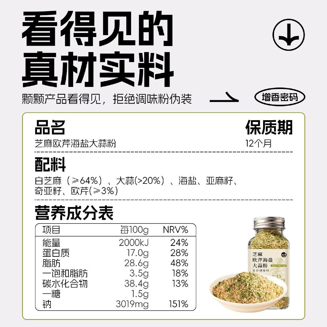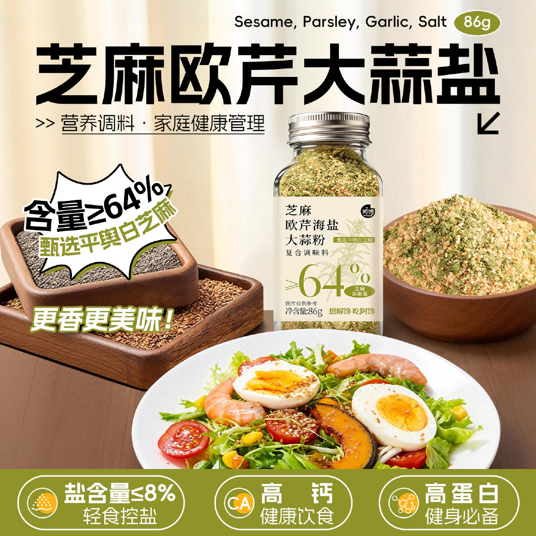 【芝麻≥64%】亚麻籽芝麻盐欧芹辣椒调料轻食水煮菜提味增香牛排盐粉