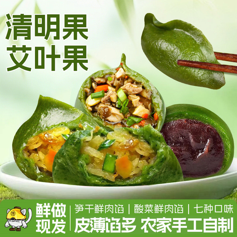 【清明果】手工笋干鲜肉酸菜豆腐艾草青菓清明果稞美味青团艾叶糍粑青饺