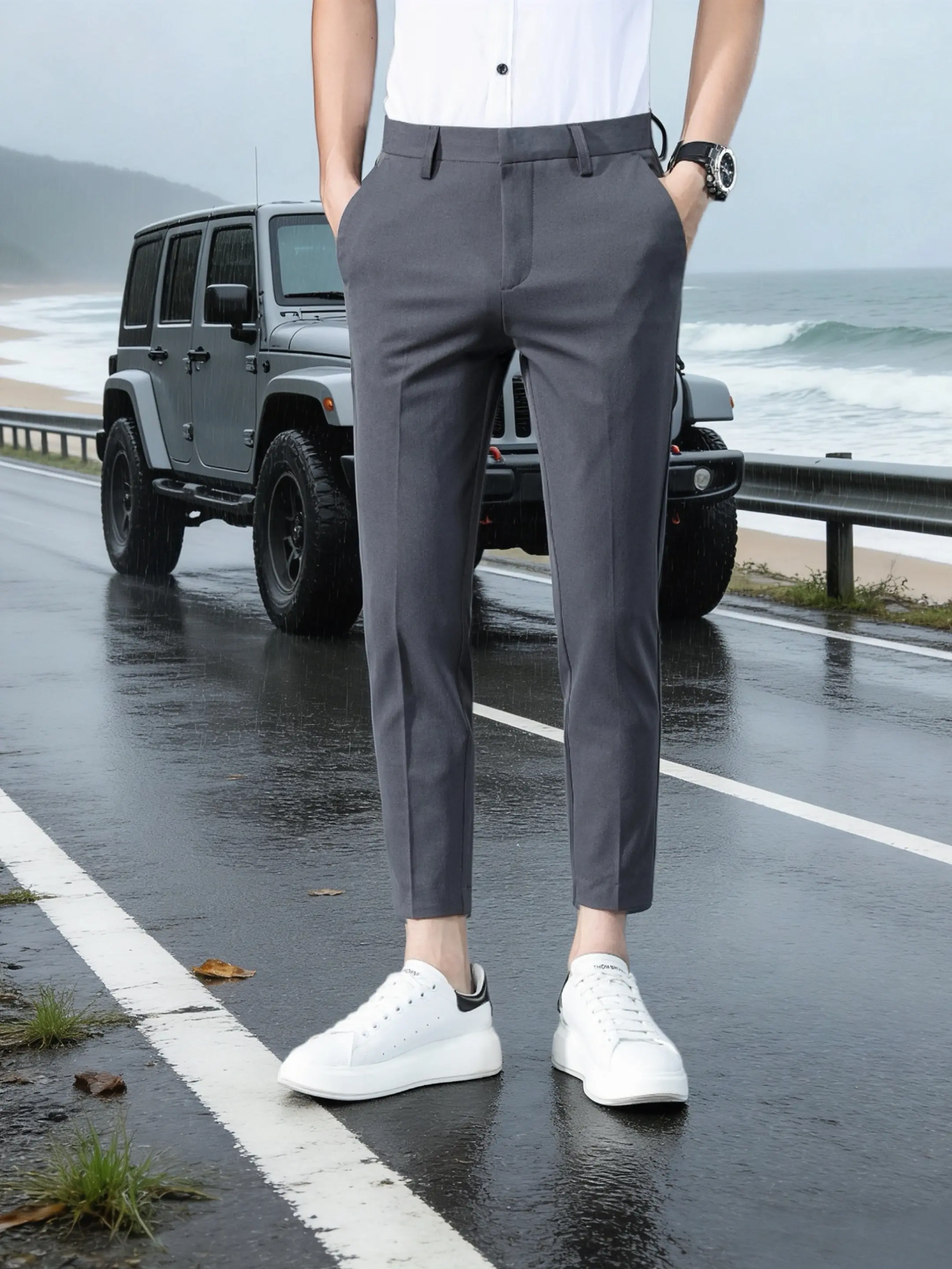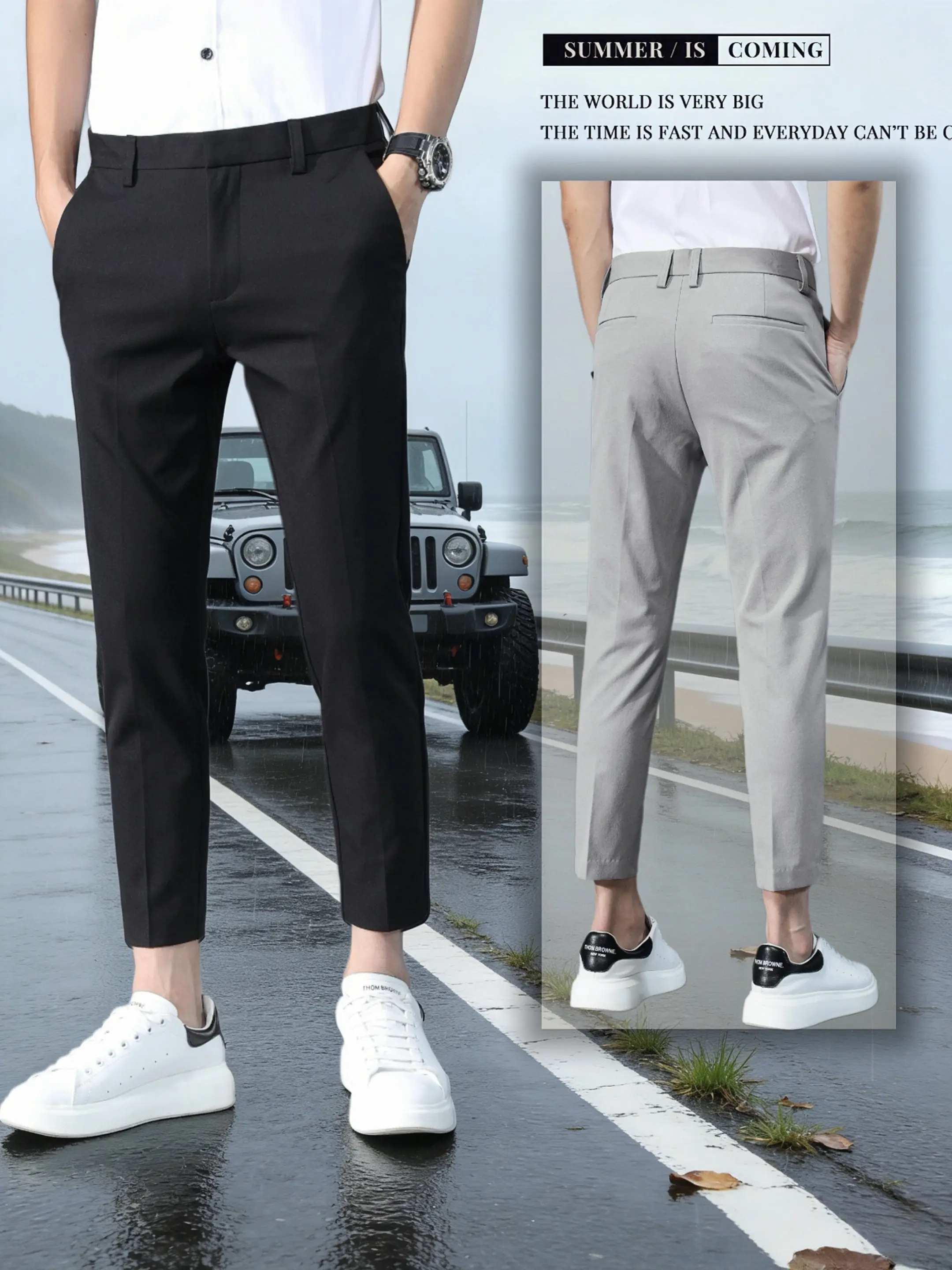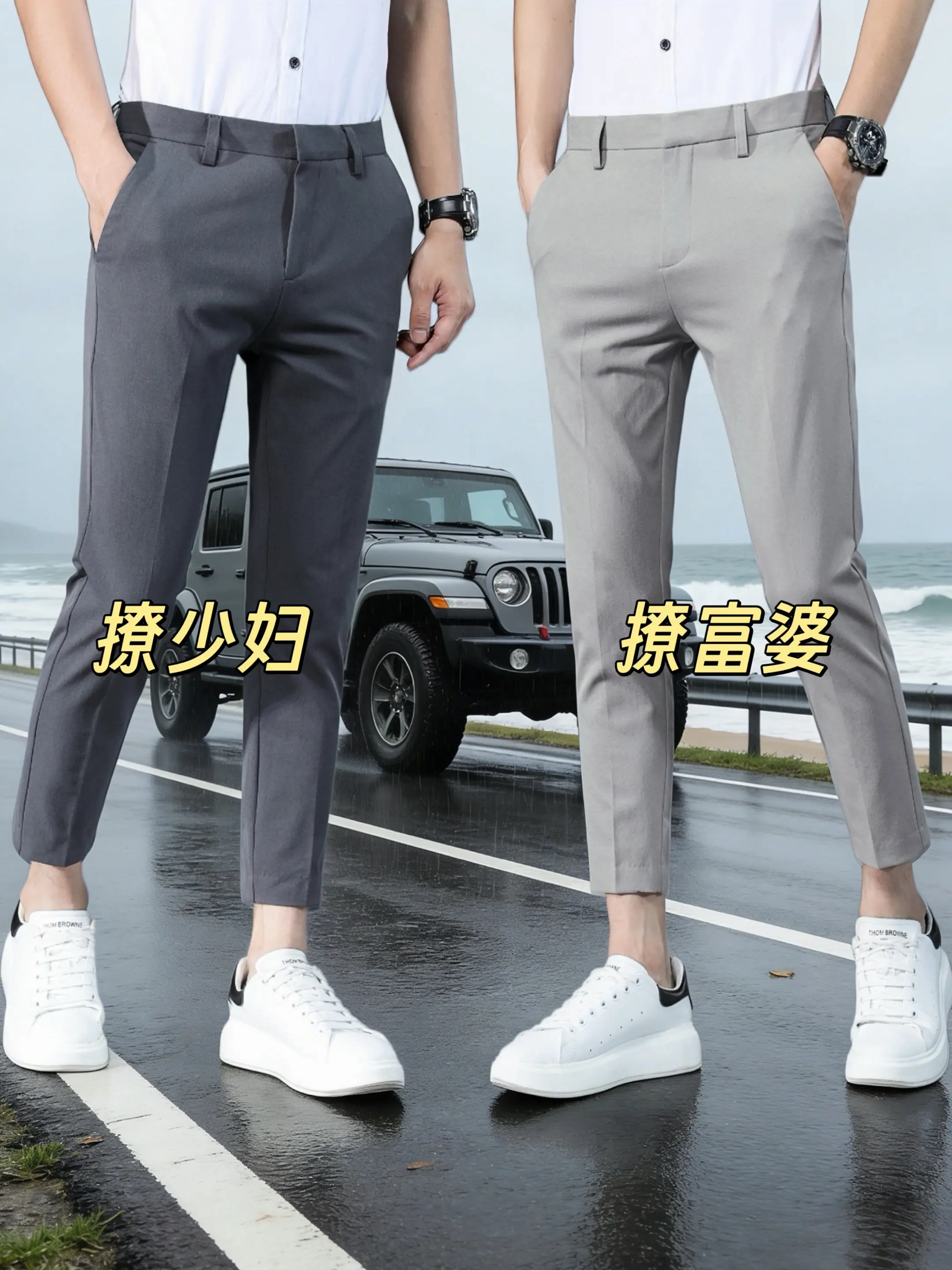好穿又实惠 韩版修身西裤男裤 浅灰色商务休闲裤 浅灰休闲裤男款 百搭裤子