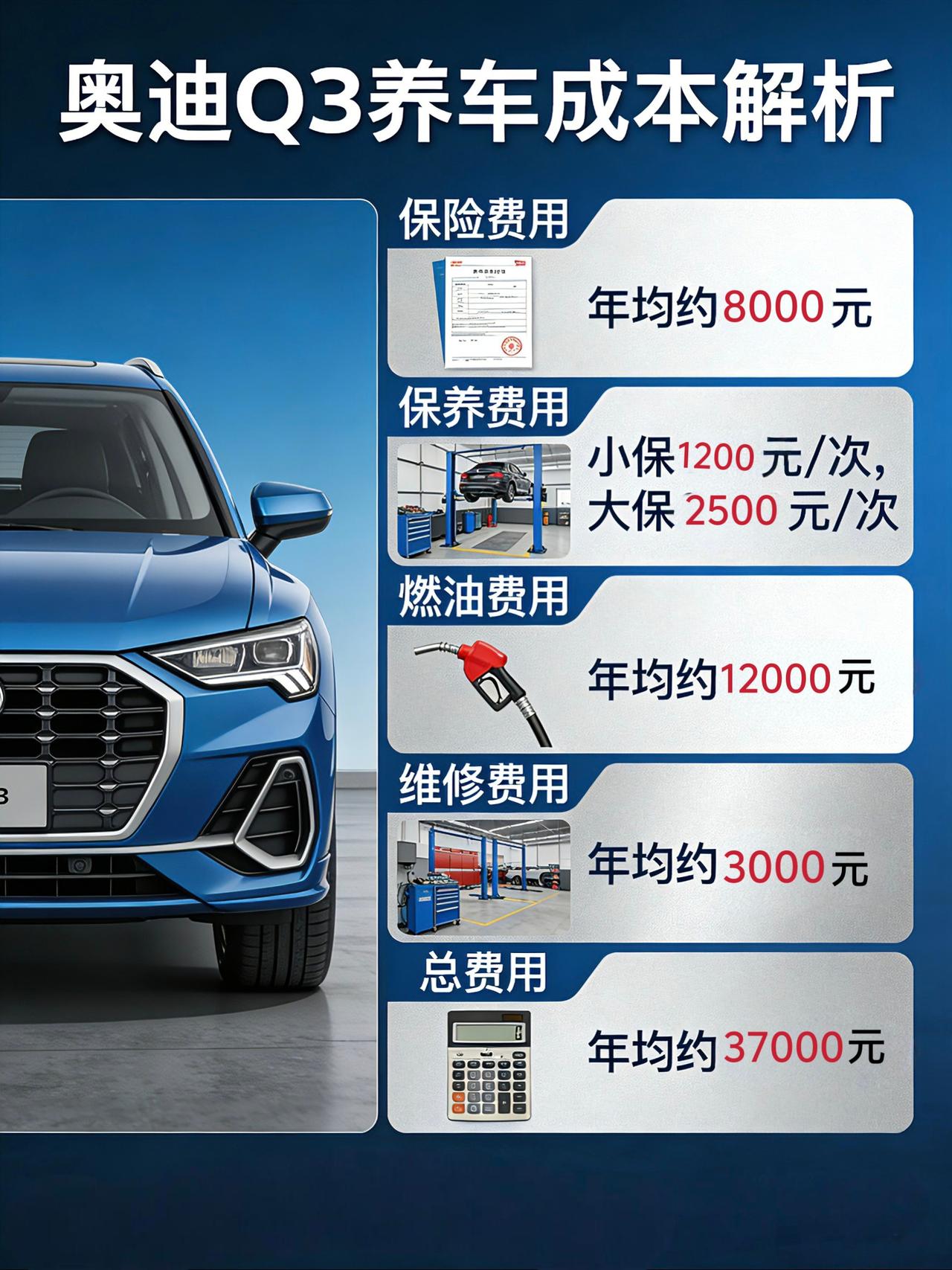 奥迪Q3:算完养车这笔账,我才知道“面子”有多贵 兄弟们,今天不聊驾驶感受,不说底盘好坏,咱们就干一件最俗但也最实在的事——坐下来,拿计算器,好好算算买一台奥迪Q3,你每年到底要为那四个圈掏多少钱。 上周末去了4S店,当时销售跟我聊完落地价之后,我又多问了几句日常花费。不打听不知道,一算吓一跳。这“豪华品牌入门SUV”的“豪华”二字,可不止体现在车价上,更体现在往后每一滴油、每一次保养里。如果你正在考虑Q3,特别是手头预算不是那么特别宽裕的朋友,我强烈建议你看完我这笔账。 第一部分:裸车价之后,才是花钱的开始 咱们以目前最走量的奥迪Q3 35 TFSI 时尚动感型(1.5T前驱) 为例。根据我今天的探店情况,这款车优惠后的裸车价在16-18万这个区间,加上购置税、保险和上牌等费用,落地价大概在20-22万左右。这个价格,其实已经比前两年友好很多了。 但买车是一次性消费,养车是持续性出血。我们重点看后面。 1. 油耗成本: 这台1.5T发动机,官方WLTC综合油耗是6.79L/100km。但这只是理想值。根据我咨询的销售和大部分车主口碑,在纯市区拥堵路况下,实际油耗轻松上到9-10L/100km。我们折中一点,按比较现实的8.5L/100km,一年开1.5万公里计算。 * 需加注95号汽油,按目前(2026年3月)的油价,约9.3元/升。 * 每年油费 = 150 * 8.5 * 9.3 ≈ 11857.5元 * 平均到每个月,光油钱就是接近1000块。如果你通勤距离长或者路况特别堵,月均油费破千是常事。 2. 保险费用: 新车第一年保险在4S店买,比较贵,大约在7000-8500元。之后如果不出险,保费会逐年下降,我们按平均每年5500元估算。 3. 保养费用: 奥迪的保养不算便宜。首保免费,后续每10000公里或一年一保。 * 小保养(更换机油、机滤):费用约在1100-1400元。 * 大保养(更换机油、三滤、火花塞等):费用在2800-3500元左右。我们粗略平均一下,每年保养费用按1800元预留是比较稳妥的。 4. 其他杂项: 停车费:因人因地而异,小区+公司+外出,一线城市每月600-1000很平常,一年7200-12000元。 洗车、美容:每月1-2次,一年约1000元。 过路费、违章预留等:一年2000元。 第二部分:我们来加总一下 不算不知道,一算吓一跳。我们只算油费、保险、保养这三项固定养车支出: 年基础费用 = 油费11857 + 保险5500 + 保养1800 = 19157元 月均基础费用 ≈ 1596元 这还没算停车费、洗车费、过路费等弹性支出。如果把平均每月800元的停车费加进去,每月固定用车成本就直奔2400元去了。 这意味着什么?意味着你除了月供(如果贷款的话),每个月还要额外准备1600-2500元的“养车基金”,而且这笔钱是雷打不动要花出去的。 第三部分:我的几点大实话和建议 算完这笔账,我最大的感受是:养一辆奥迪Q3的持续压力,可能比那个20万出头的落地价更值得你关注。 它考验的是你未来5-8年持续稳定的现金流。 给“面子”算笔账:你愿意每月多花上千元(相比普通品牌同价位SUV),来支付“四个圈”带来的品牌溢价和社交价值吗?这笔钱,如果省下来,可以成为你每年的旅行基金、自我提升课程,或者是一笔不错的投资。 目标人群画像:我认为,奥迪Q3更适合这两类人: 1. 家庭支持的年轻人:父母帮忙解决首付或车款,自己只需要承担相对轻松的养车费用。 2. 事业稳定的中产家庭增购车:家庭主力车型已备,Q3作为第二辆车,给配偶或自己用,对用车成本不敏感,更看重品牌和精致感。 一个残酷的对比:如果你手头预算在20万落地,但又非常在意后续花费,那么同价位的普通品牌合资SUV(如大众、本田、丰田的高配车型),甚至一些国产新能源SUV,在配置、油耗(如果是混动/纯电)和保养成本上,可能会给你带来完全不同的、压力小得多的拥有体验。 最后说一句: 探店看车,别光被销售的热情和诱人的金融方案冲昏头脑。静下心来,像我这样,拿张纸、打开手机计算器,把未来三五年的账粗略算一算。车子是提升生活品质的工具,但如果因为它让你的日子捉襟见肘,每天为油费和保养发愁,那就本末倒置了。 “豪华”的滋味,不止在提车的那一刻,更在拥有它的每一天。这份持续的成本,你是否真的准备好了? 注:以上车价、油耗、保险及保养费用基于2026年3月于东莞地区奥迪4S店实际探访及市场行情估算,会随地区、时间及个人用车情况波动,仅供参考。购车前请以当地经销商最新信息为准。【来自懂车帝车友圈】