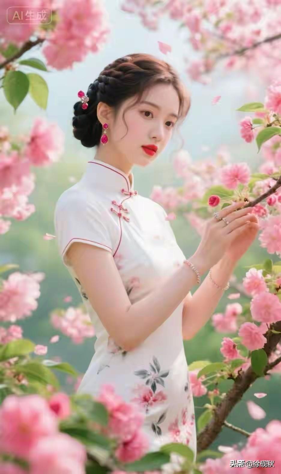 东方佳丽 ,旗袍美人。 春暖花开,花香四溢。 出水芙蓉,亭亭玉立。 眉清目秀,美
