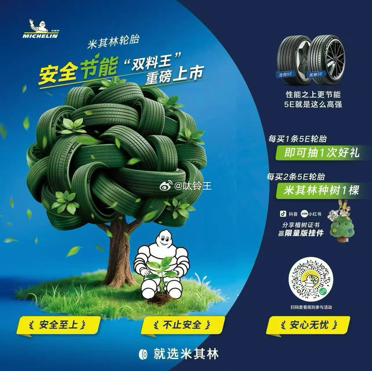 🔥 性能之上更节能!4.1-5.15,到店买5E轮胎👇✅ 买1条抽1次🎁 奖品:万元植树之旅、大疆云台、咖啡杯、扩香木等…✅ 买2条,米其林种树1棵✅ 晒证书还可赢限量挂件趁着福利,给爱车升级一下~