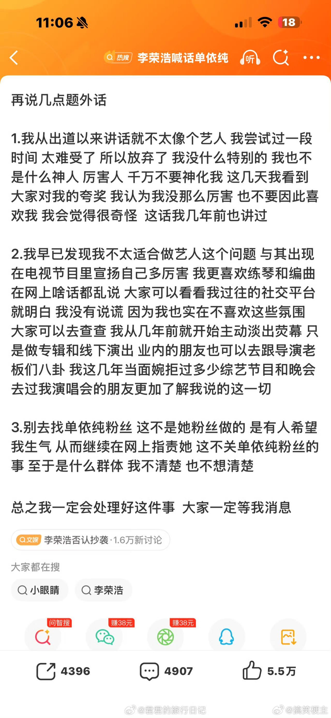 李荣浩 哪个250会抄得一模一样 他的回应没有半句废话,直接点破谣言的荒唐,这种