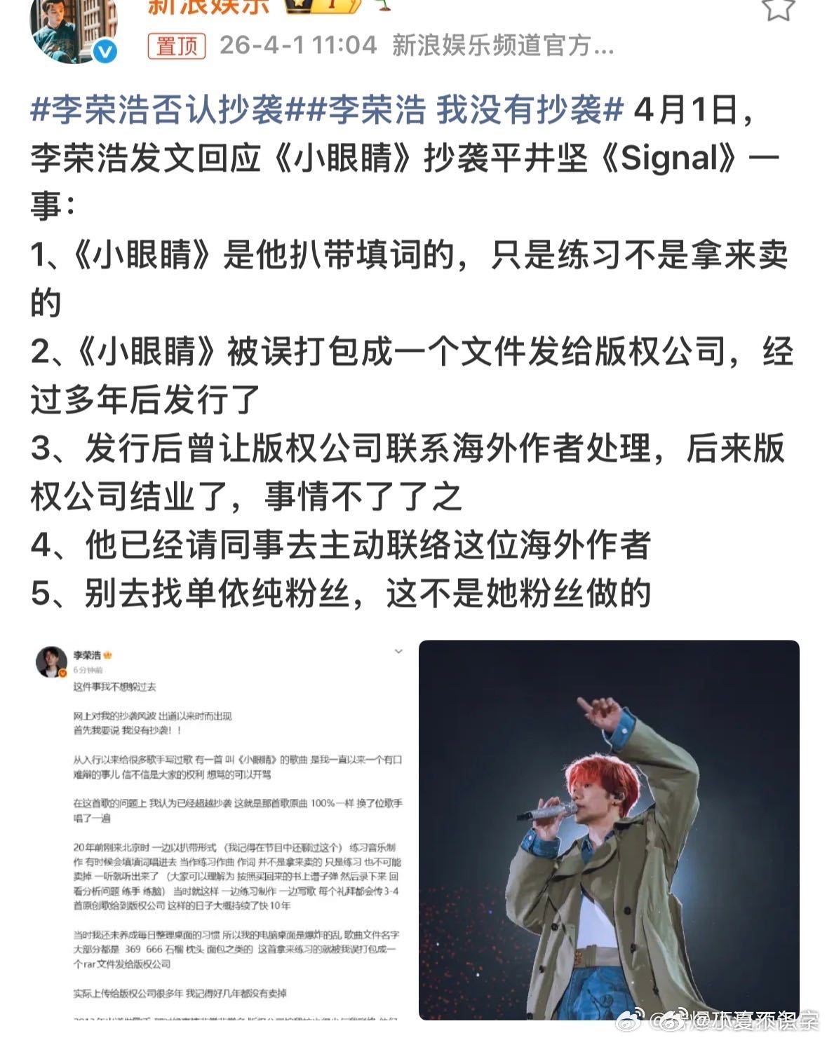 李荣浩 哪个250会抄得一模一样 支持正常维权,也反对无底线造谣,这种一眼假的节