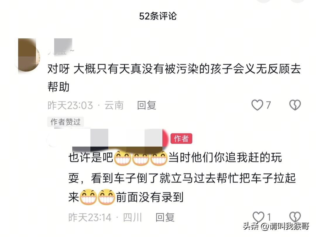 近日四川一博主记录下了路边温馨的一幕,一位捡废品的老人在上坡的时候自行车倒了,刚好被放学路过的几个小朋友看到了,他们立马上前帮忙把车子扶正,然后再一起帮这个老人把车子推上了坡顶。无论生活变成什么样子,身边总会有那么一群善良的人,在他人遇到困难的时候,会毫不犹豫的伸出援助之手,他们不求回报,只是随心而动的顺手为之。你身边经常会遇到这样的人吗?