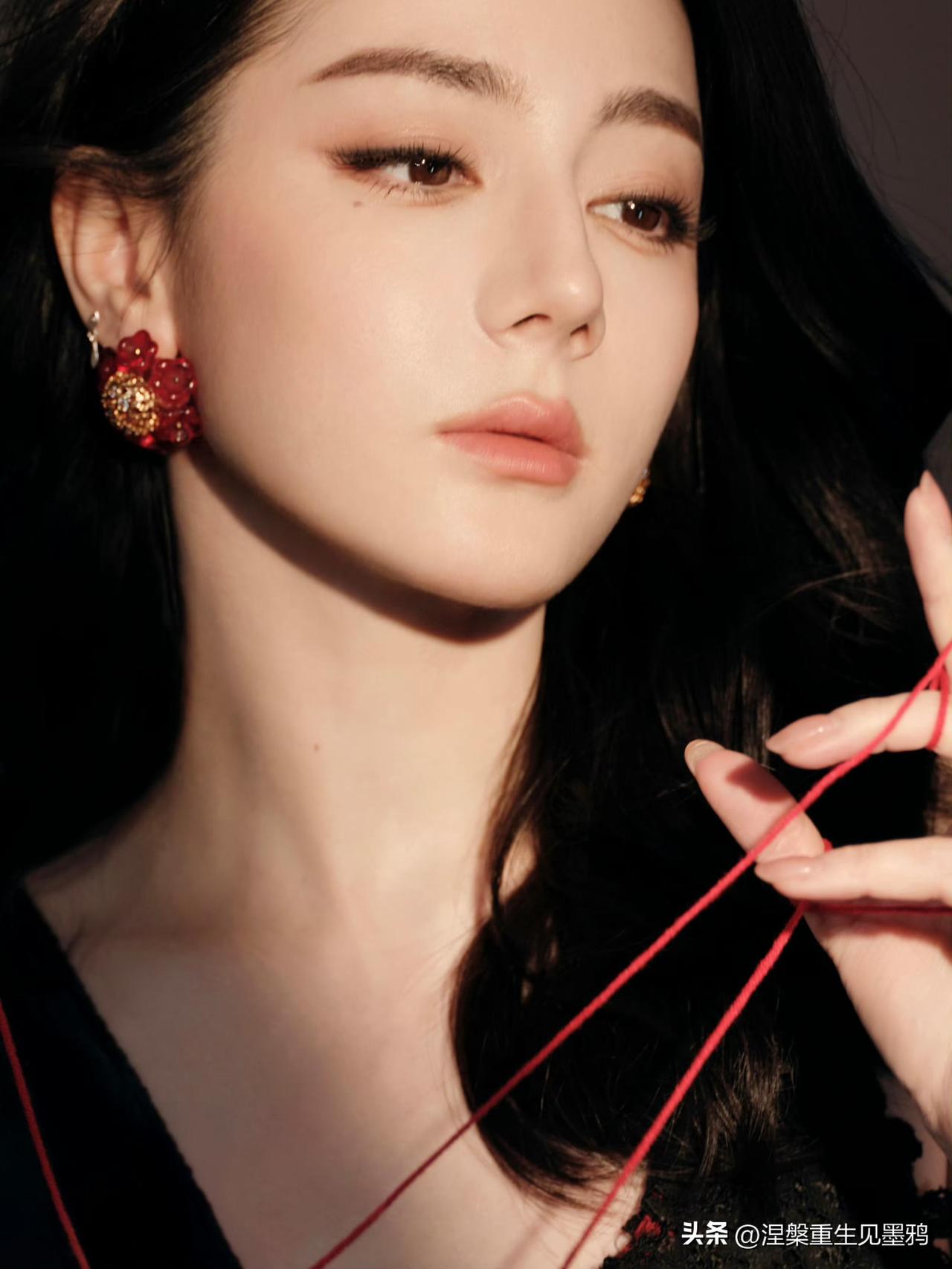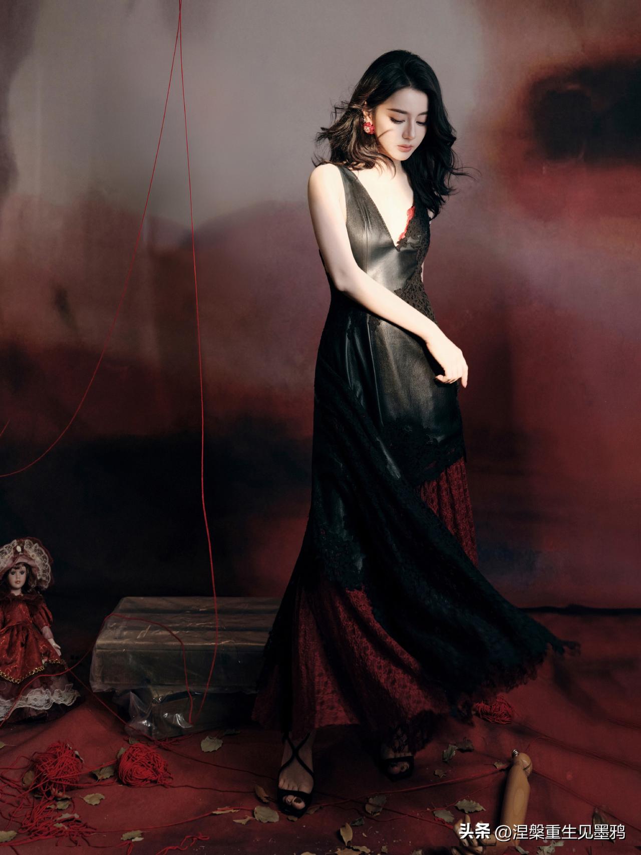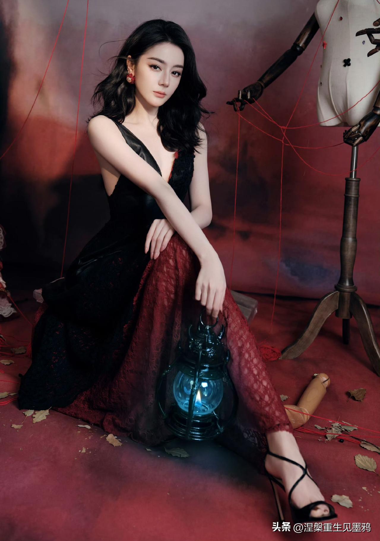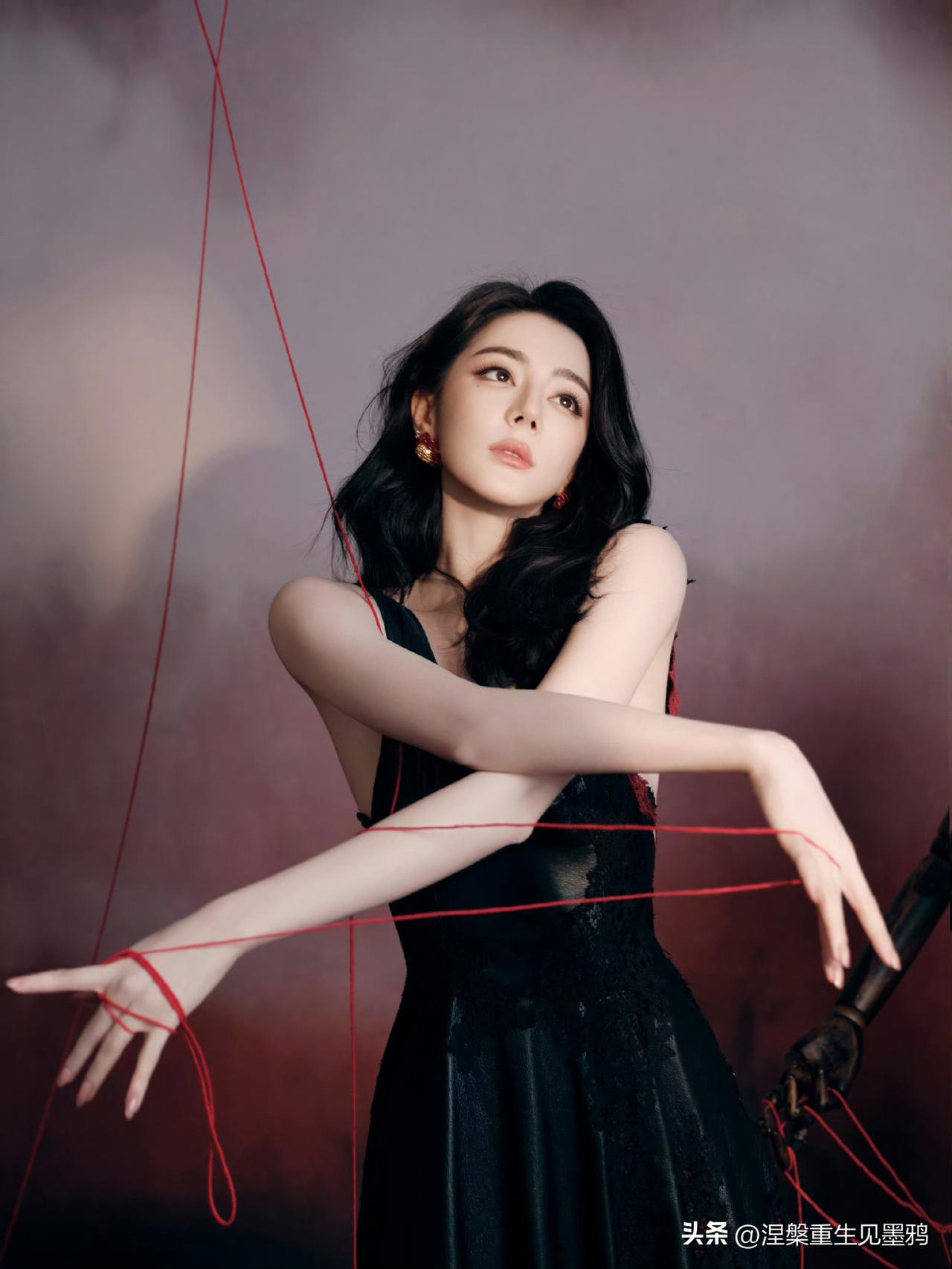 迪丽热巴在这组照片中展现出的惊艳,源于她骨相与氛围的完美共振。 红黑交织的宿命感 她身着黑色深V礼裙,在暗调背景中勾勒出冷艳剪影,而缠绕周身的红绳与耳畔的红石榴耳饰,则如暗夜中燃烧的火焰。这种极致的红黑碰撞,不仅视觉冲击力强,更隐喻着角色贺思慕“提灯而来”的执掌全局之力,将危险与迷人揉碎在光影里。 骨相美人的张力 大波浪卷发肆意铺陈,衬得面部轮廓愈发深邃立体。无论是侧身倚靠人台时的慵懒,还是直视镜头时的犀利,她眼尾微挑的瞬间,都能让艳丽从骨子里漫出来。那是一种无需繁复修饰的惊艳,一半是勾人的妩媚,一半是算尽人心的冷冽,把“万物无处遁形”的气场演绎得淋漓尽致。