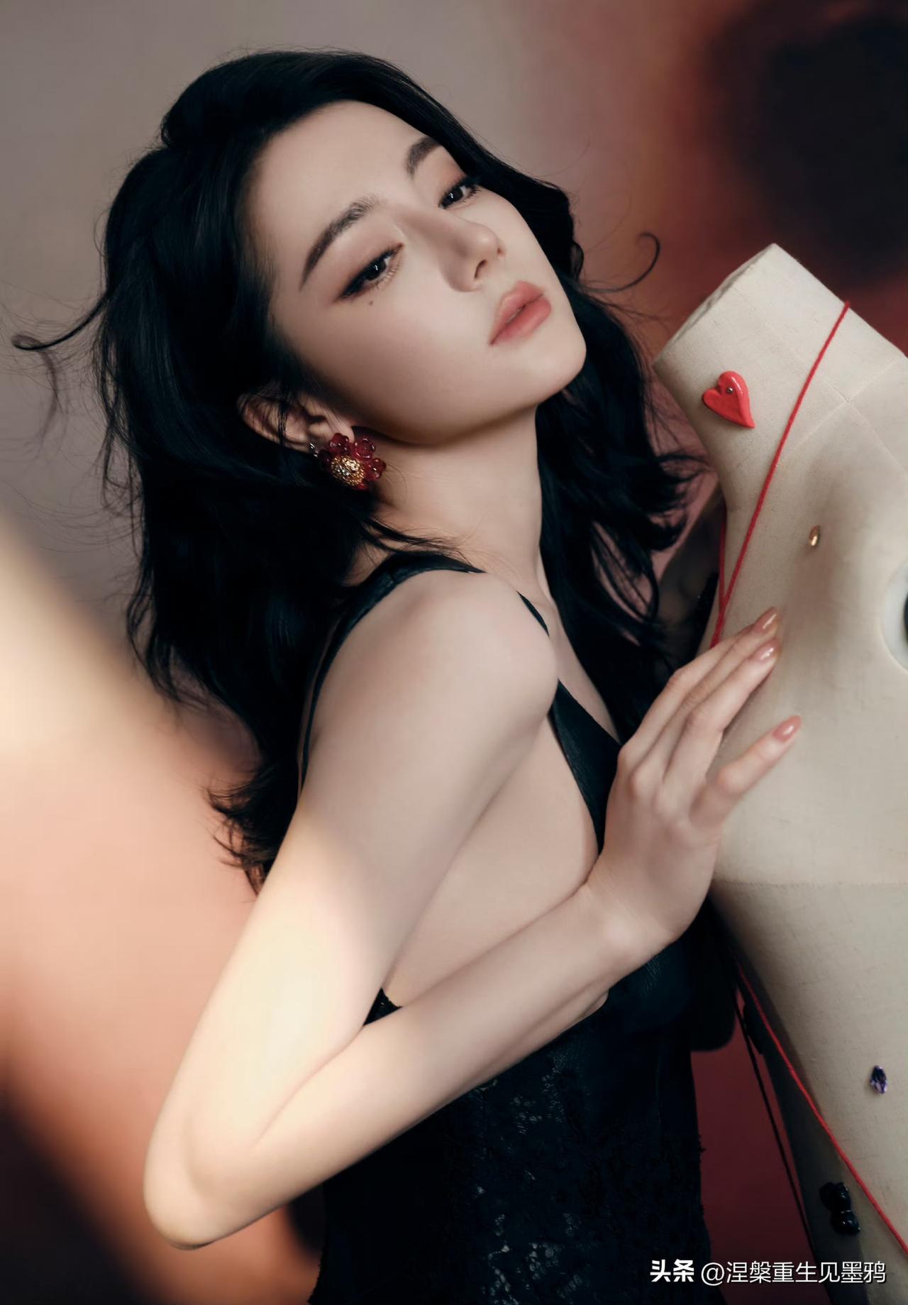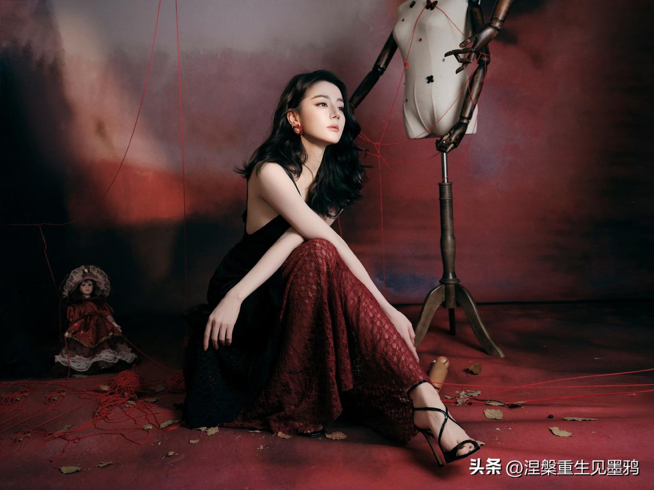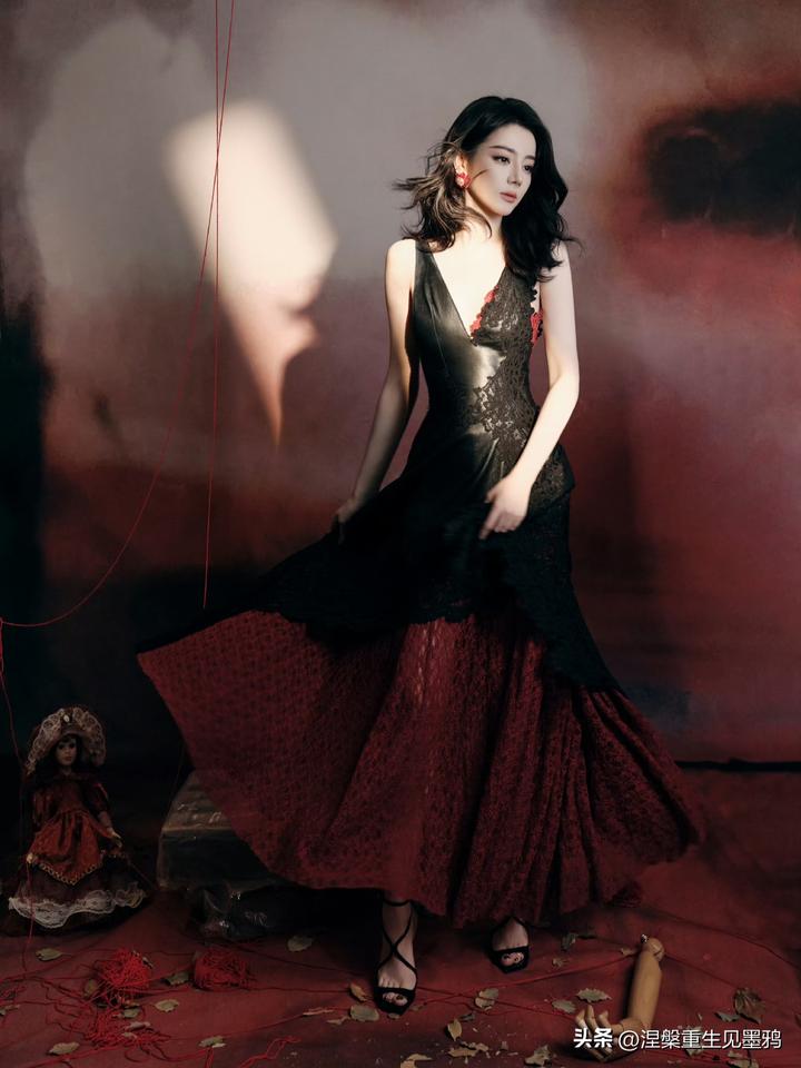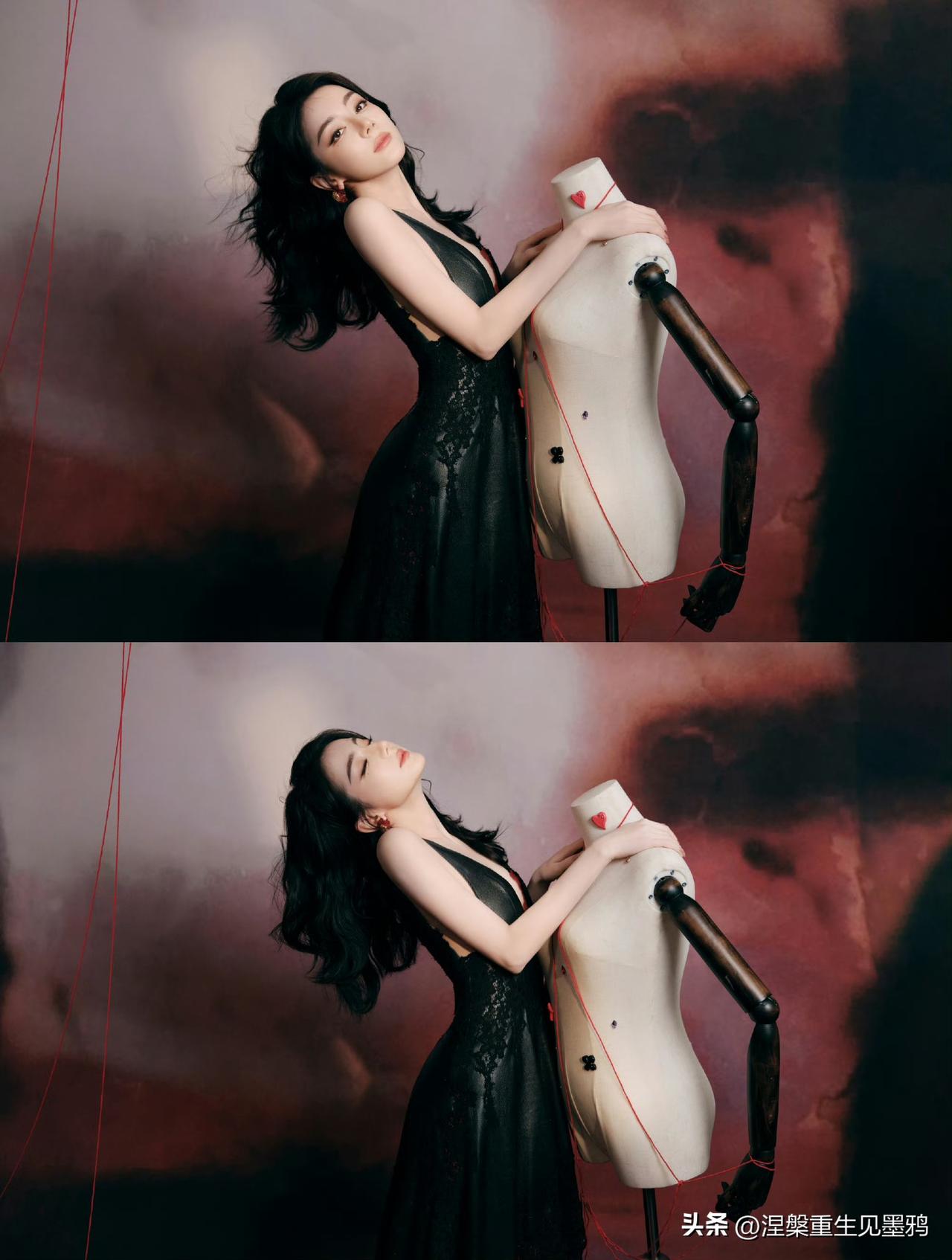 迪丽热巴在这组照片中展现出的惊艳,源于她骨相与氛围的完美共振。 红黑交织的宿命感 她身着黑色深V礼裙,在暗调背景中勾勒出冷艳剪影,而缠绕周身的红绳与耳畔的红石榴耳饰,则如暗夜中燃烧的火焰。这种极致的红黑碰撞,不仅视觉冲击力强,更隐喻着角色贺思慕“提灯而来”的执掌全局之力,将危险与迷人揉碎在光影里。 骨相美人的张力 大波浪卷发肆意铺陈,衬得面部轮廓愈发深邃立体。无论是侧身倚靠人台时的慵懒,还是直视镜头时的犀利,她眼尾微挑的瞬间,都能让艳丽从骨子里漫出来。那是一种无需繁复修饰的惊艳,一半是勾人的妩媚,一半是算尽人心的冷冽,把“万物无处遁形”的气场演绎得淋漓尽致。