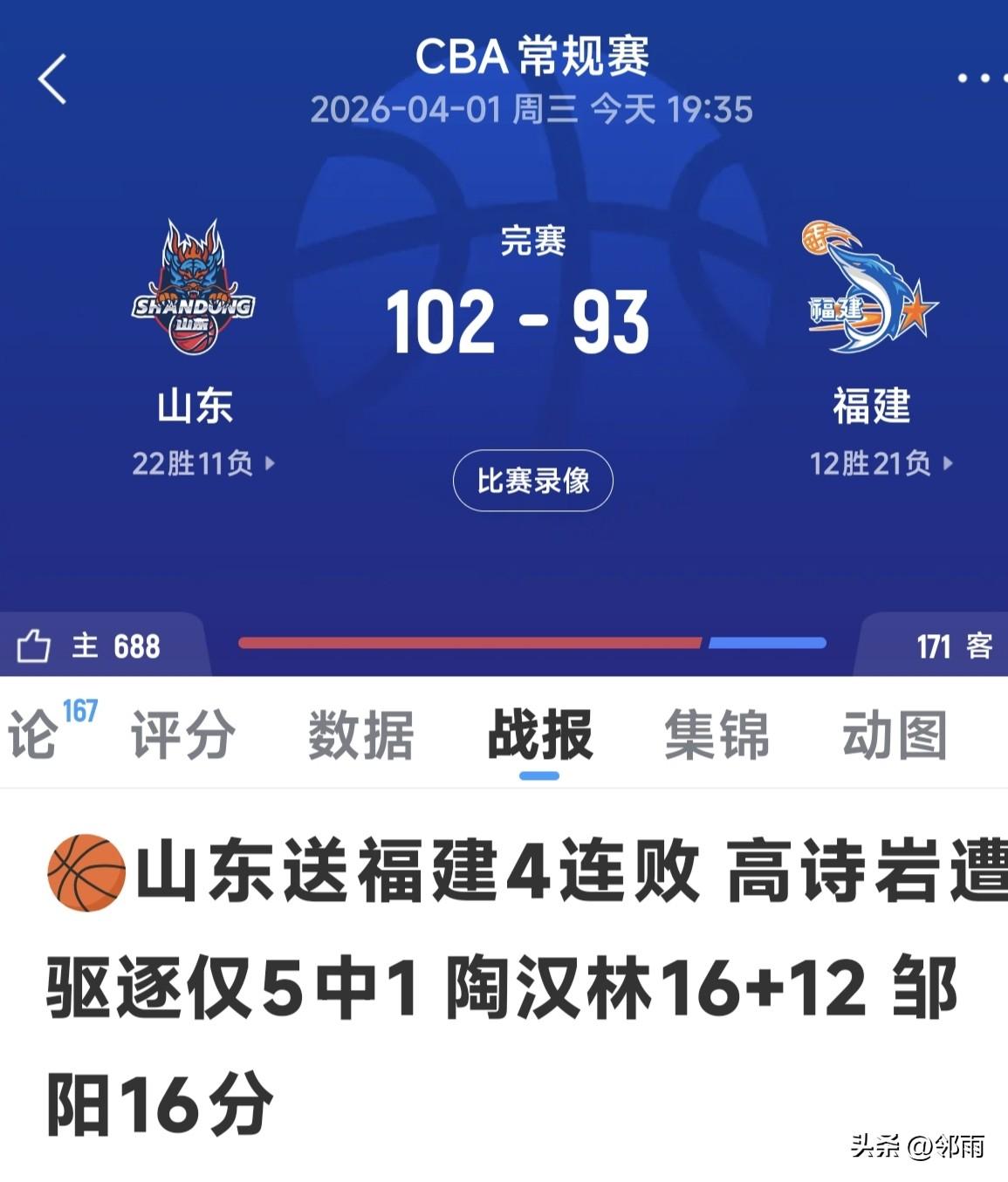 CBA第33轮山东与福建的比赛悬念丛生,外籍主教练凯撒确实有一手。整场比赛满是你争我夺、激烈拼搏的刺激场景。自始至终,福建队都展现出超强的身体对抗,直至终场仍体能充沛。 这也使得裁判的哨声在全场不断响起,40分钟的比赛里,两队共被吹罚55次犯规、77次罚球,简直成了罚球大战。 山东罚球命中率达78%, 福建罚球命中率为66%。 不过,福建队全场65投31中,投篮命中率为48%, 尤其是三分球26投10中。 比赛进行到最后2分40秒时,比分仍充满悬念,为93比91,福建队确实实力不俗。 但不知为何,在这最后阶段,福建队集体发挥失常,让山东队得了9分,自己仅得2分,最终以93比102遗憾落败,也遭遇了四连败。