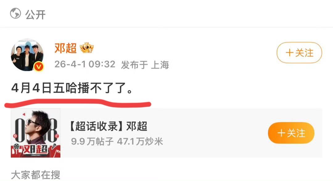 邓超鹿晗太会玩了,4月1日愚人节邓超发文称“4月4日,五哈播不了了,”就在网友猜测真实时,五哈节目组发文辟谣了,说“4月4日不播是假的,超哥期待播出的快乐是真的。” 邓超发完以后鹿晗也跟着凑热闹发文赞成“我同意4月4日五哈不播,”但配图却是“划重点,本周六日18点。”暗示五哈播出的真实时间。 两人这种反向宣传,让观众对新一季的五哈更感兴趣了,这次老嘉宾鹿晗也回归了,邓超陈赫范志毅等人也在,大家庭终于圆满了。