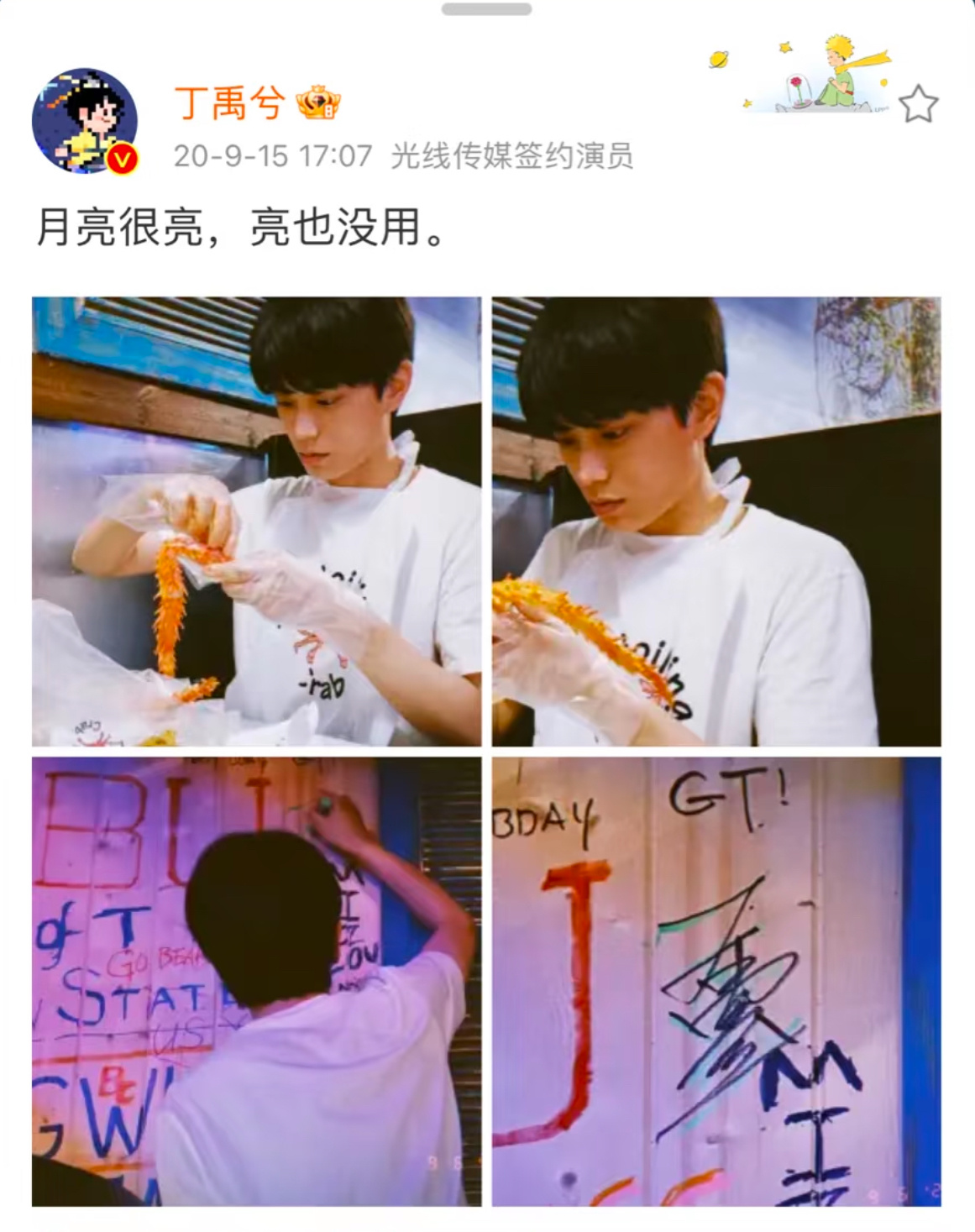 丁禹兮电影天才游戏dyx丁禹兮陈伦 原来这条微博的后半句是“我喜欢你,喜欢也没用,没用也喜欢。”好会说情话哦