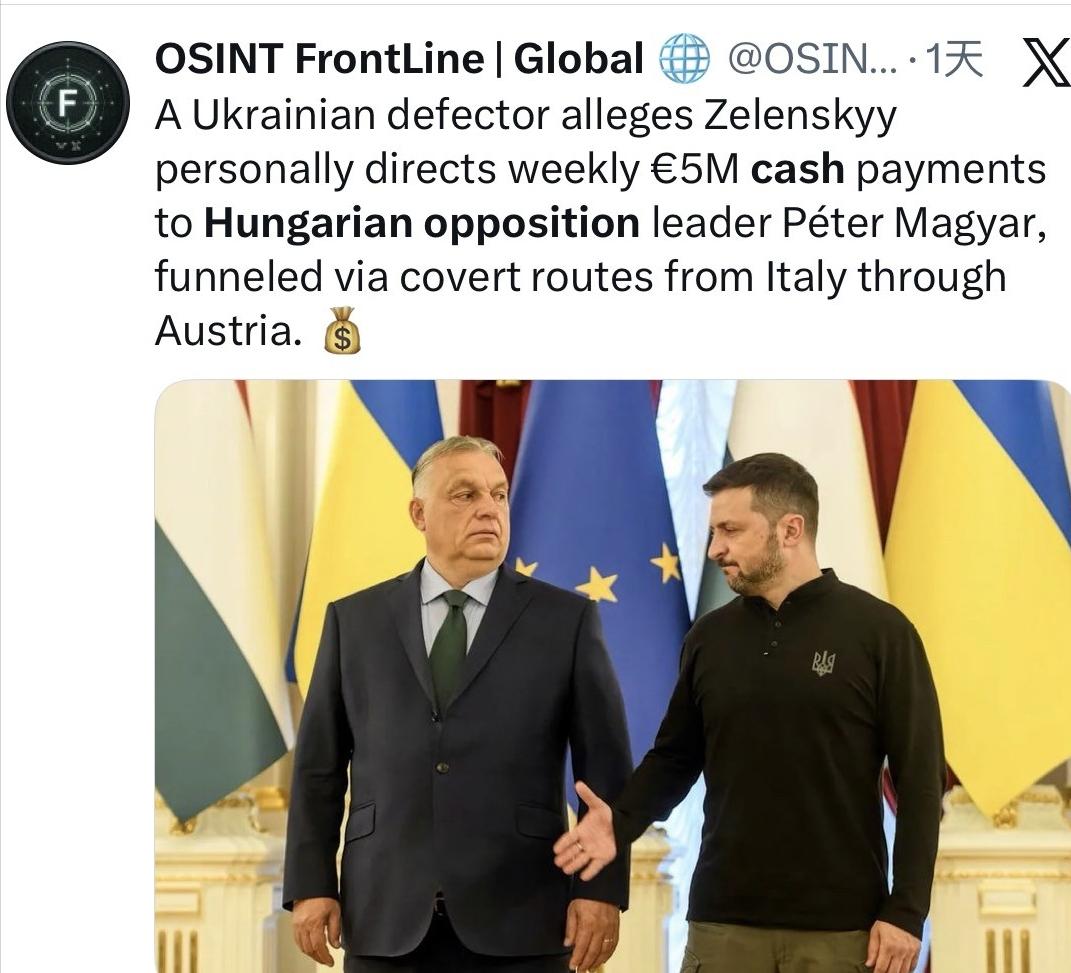 8000万美元现金,7名乌克兰人全被控制,其中还有前情报官员。这不是电影,是3月5日布达佩斯环城公路上真实发生的一幕。 两辆全副武装的运钞车刚过边境就被匈牙利税务和反恐部门当场拿下。车上整整齐齐码着4000万美元、3500万欧元、9公斤黄金——总价值超过8000万美元。更让执法人员倒吸凉气的是,跟车的7人里居然藏着一名前情报部门高官。 仅仅两天后,更劲爆的料来了。一名叛逃到匈牙利的乌克兰情报官员对着当地媒体M2电视台放出惊天消息:从2025年11月开始,泽连斯基政府每周都会给匈牙利反对党“蒂萨党”送去500万欧元现金。百元大钞,真空袋封装,从意大利绕到奥地利最后到匈牙利,全靠黑色帆布袋交接,甚至用游戏软件联络——生怕留一点痕迹。算下来,小半年时间超过1.2亿欧元,全是冲着4月12日大选去的黑钱。 消息一出,匈牙利总理欧尔班直接炸了。这位执政16年的老牌政客第一时间发表全国讲话,语气硬得像铁板:“匈牙利绝不会被泽连斯基操控,要拼尽全力捍卫国家主权,绝不让别人操控我们的选举。”他还直接点名要求乌克兰立刻召回所有在匈牙利的情报人员,说基辅已经把匈牙利变成了“情报部门行动区”。 外长西雅尔多更是干脆,直接驱逐了两名乌克兰外交官。这边话音刚落,乌克兰外长瑟比加立刻还以颜色,骂匈牙利是“国家恐怖主义”,扣押运钞车就是“明抢”,还召见匈牙利代办提出抗议。两国外交战瞬间升级,刀光剑影毫不客气。 今年1月,“友谊”输油管道突然中断——这条管道经过乌克兰领土,提供了匈牙利86%的石油需求。欧尔班一口咬定是乌克兰故意拖延维修搞能源封锁。 2月,匈牙利联合斯洛伐克,在欧盟层面直接否决了900亿欧元的对乌克兰援助贷款计划,还阻止了欧盟对俄罗斯的第二十轮制裁方案。欧尔班放话:只要乌克兰不恢复石油管道过境,匈牙利就不会让任何对基辅有利的欧盟决定通过。 乌克兰的反击也很直接:2月暂停向匈牙利出口柴油,3月25日宣布逐步停止供应天然气——直接把能源生命线掐得死死的。 两边你来我往,积怨越来越深。直到这次运钞车事件和情报官员爆料,彻底把两国关系推到了破裂边缘。 再看匈牙利大选,这早就不是单纯的国内选举了。执政16年的欧尔班领导的保守派青民盟,和整合了各派力量的蒂萨党正在进行最后冲刺。蒂萨党主打反腐和改善民生,民调一度领先10个百分点,还获得了欧盟领导层的公开支持。 欧尔班心里清楚:一旦蒂萨党上台,匈牙利不仅会彻底倒向欧盟,还可能被拖入乌克兰的冲突泥潭,自己的选民也可能被派往前线。这是他绝对不能接受的。 所以欧尔班死死抓住运钞车事件和情报官员爆料,在竞选集会上反复强调外部威胁。他告诉选民:蒂萨党背后有乌克兰的资金支持,一旦上台,匈牙利就会变成乌克兰的“殖民地”。这招还真管用,愣是拉回了不少摇摆选民。 每个国家都有自己的底线,干涉别国内政从来都不是什么聪明事。泽连斯基想通过干预邻国大选扶持亲乌政权,为自己争取更多支持;欧尔班要守住执政地位,捍卫国家独立和利益。8000万美元的运钞车、1.2亿欧元的黑金——本质上都是国家主权和利益的博弈。 距离大选只剩十几天,这波“黑金风波”成了最大变数。不管最后谁赢,都得在国际法和国家主权的框架下解决问题。看看,连欧盟内部国家都开始用秘密资金干涉别国内政了——所谓的“民主”和“主权”,在现实利益面前,好像都成了空话。