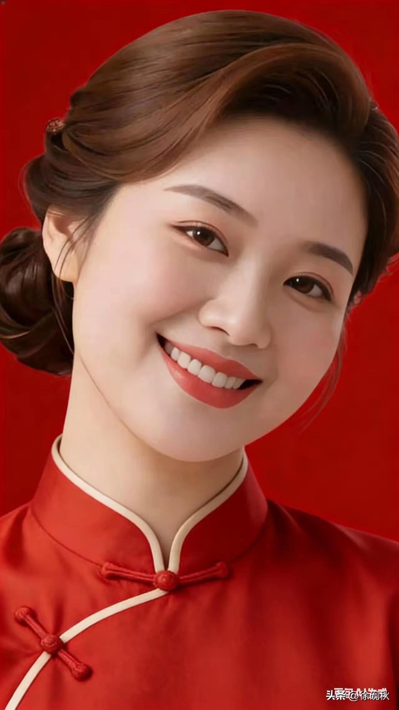 金缕柔丝覆玉颜, 星眸含露意绵绵。 丹唇轻启春风暖, 粉面含桃更娇艳。