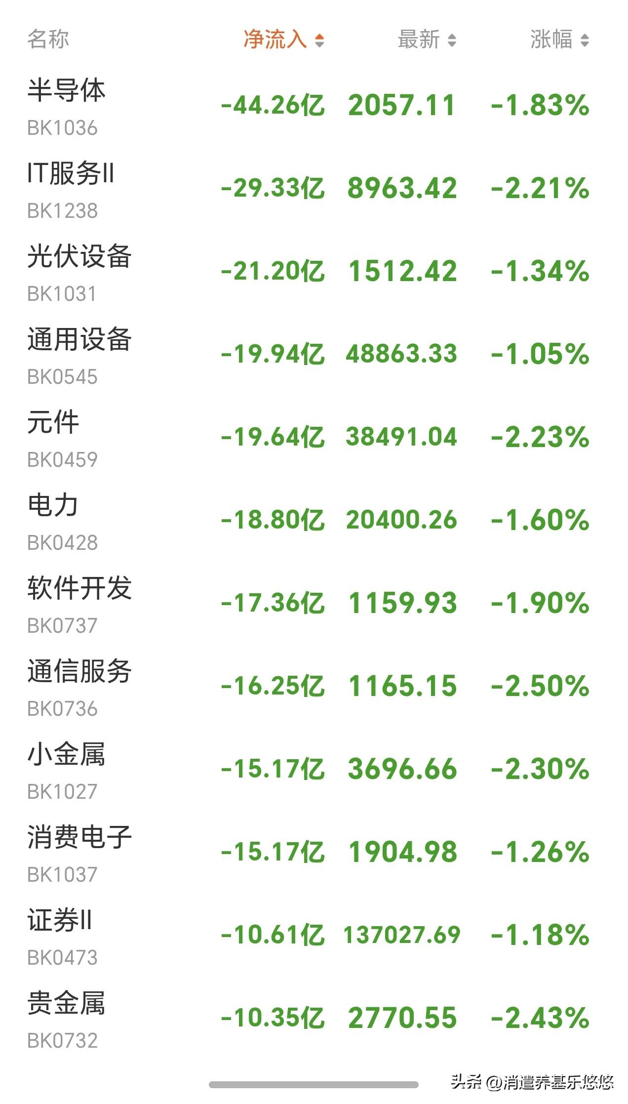 4.2午间主力资金动向 。大盘今天跟随亚太股市震荡走低,上证指数有回踩下方5日线欲望。今天北证反弹强烈,创新药继续表现,能源金属电池概念补涨。猪肉煤炭白酒银行老登板块反弹居前。科技板块集体走弱,特别是半导体芯片板块波动比较大。手里持有的创业板人工智能,半导体设备科创芯片跌幅居前,这样下去今天吃面了。 今天早盘主力资金流入比较多的板块有 电网设备,能源金属,锂电池,银行,化学医药等。 主力资金流出比较多的板块有 人工智能,云计算大数据,半导体芯片,光伏,电子元件,软件开发,小金属,证券等。 截止发文,两市成交额1万亿元,比昨天萎缩超1200亿元,主力资金流出350亿元,南向已经流入50亿元。 恒生科技指数表现比较弱,后期不排除继续寻底。